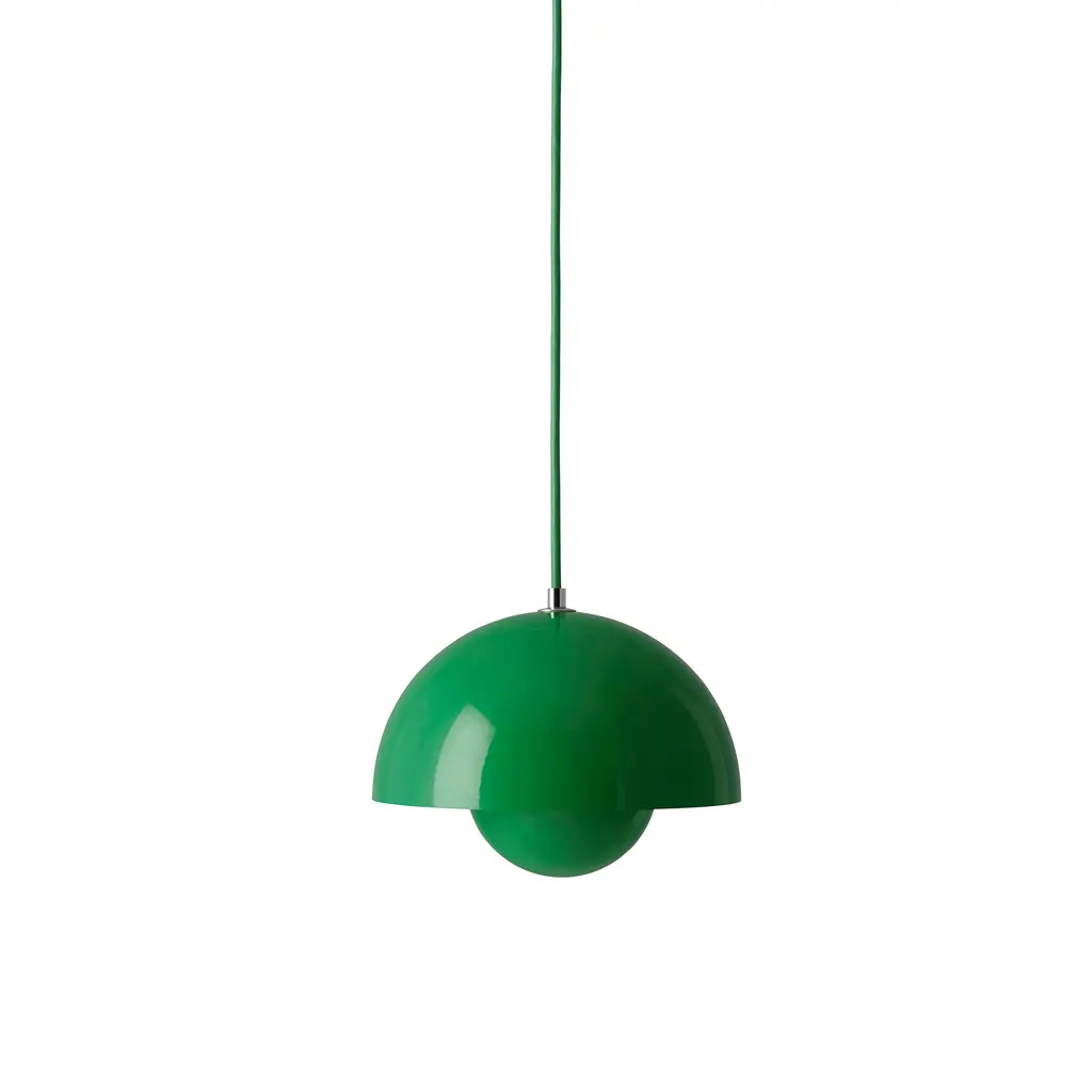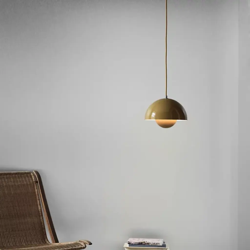 The Flowerpot VP1 Pendant from &Tradition is designed by Verner Panton, blending timeless elegance with contemporary flair. Crafted with care, this pendant features a dome-shaped shade made of high-quality metal. It’s secured by a downrod and ceiling canopy. The 2-hemisphere formation adds functionality and contemporary flair. Made in the Scandinavian artisanal tradition, Flowerpot showcases impeccable craftsmanship and a commitment to quality. For versatility, this fixture is dimmable with a separately sold ELV dimmer.