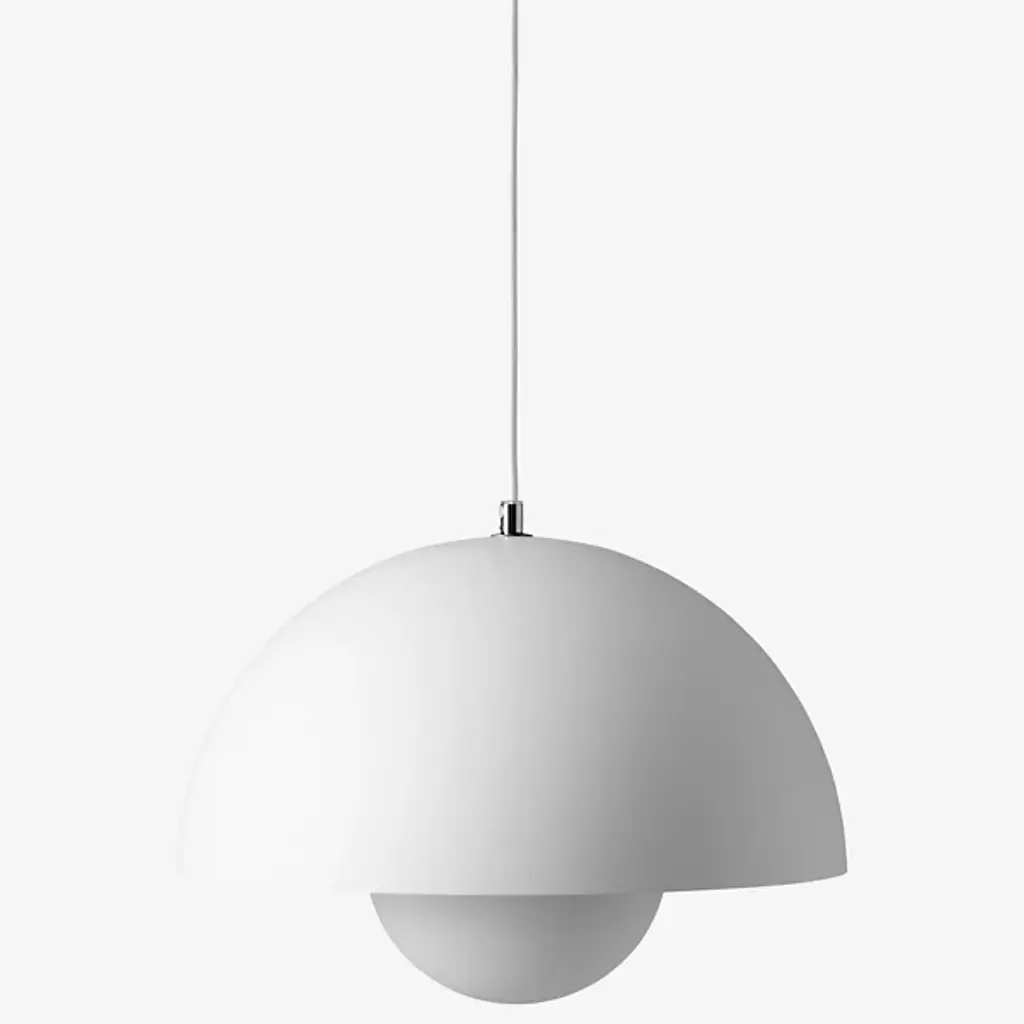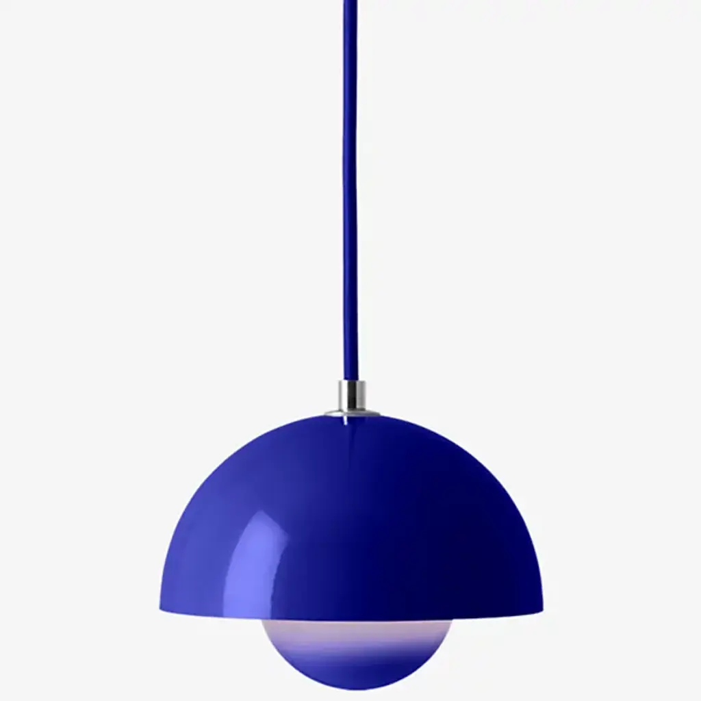 The Flowerpot VP1 Pendant from &Tradition is designed by Verner Panton, blending timeless elegance with contemporary flair. Crafted with care, this pendant features a dome-shaped shade made of high-quality metal. It’s secured by a downrod and ceiling canopy. The 2-hemisphere formation adds functionality and contemporary flair. Made in the Scandinavian artisanal tradition, Flowerpot showcases impeccable craftsmanship and a commitment to quality. For versatility, this fixture is dimmable with a separately sold ELV dimmer.