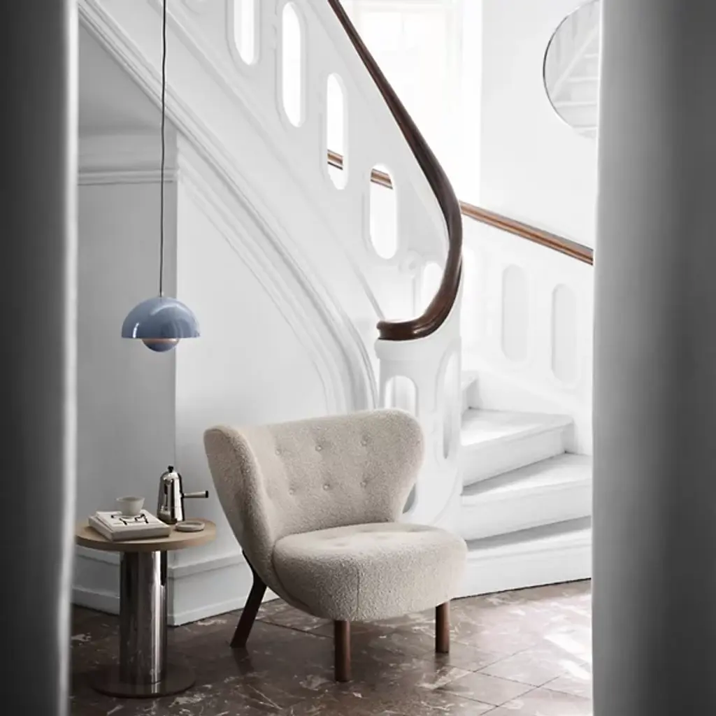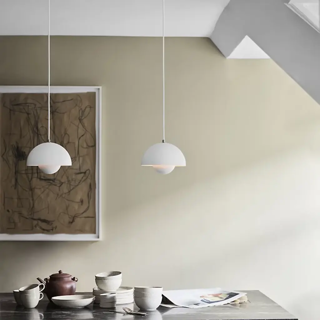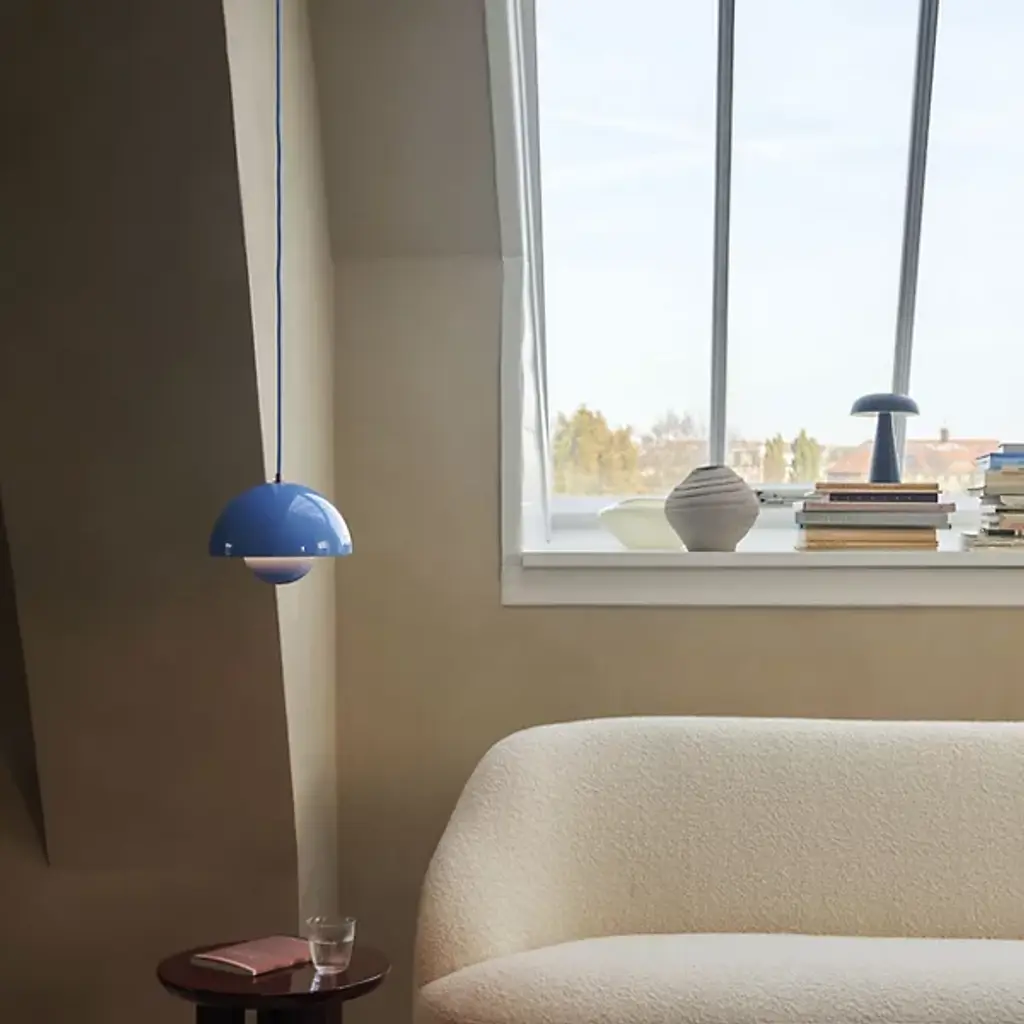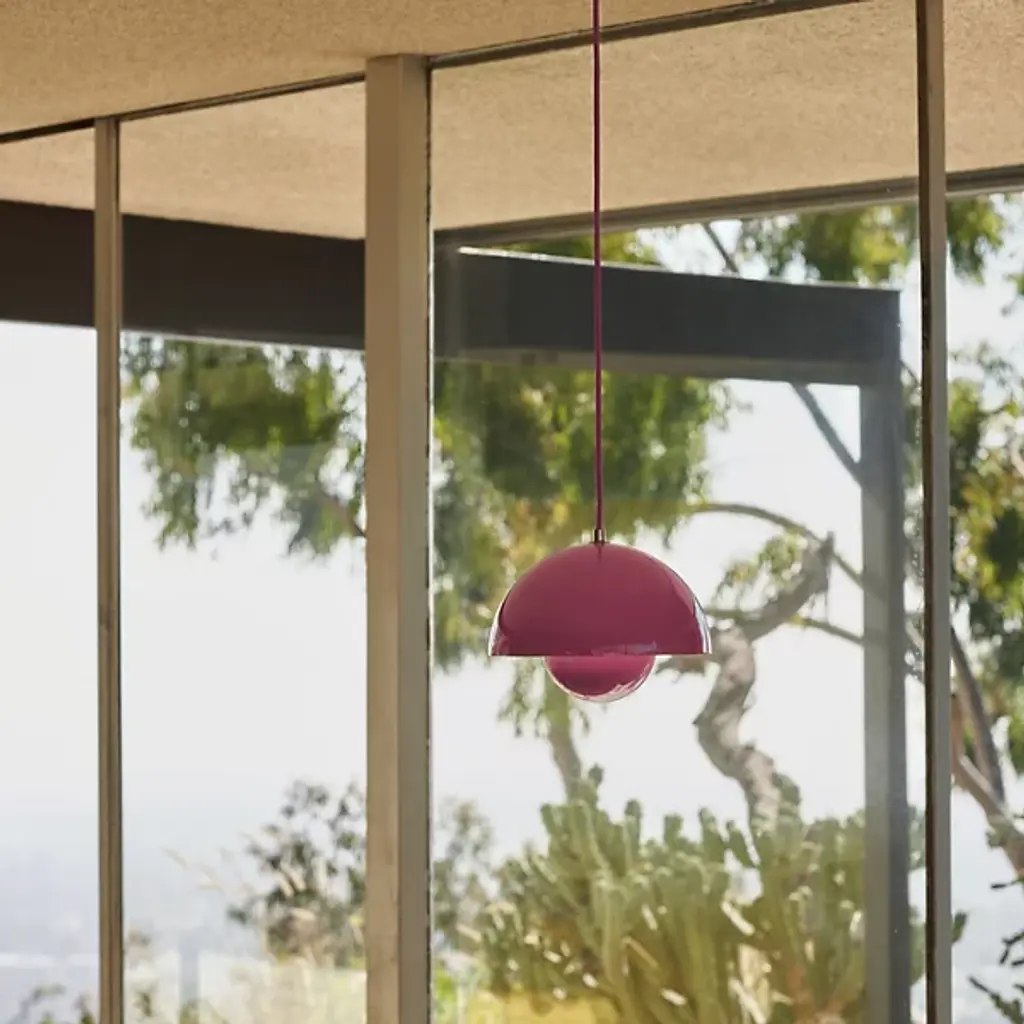 The Flowerpot VP1 Pendant from &Tradition is designed by Verner Panton, blending timeless elegance with contemporary flair. Crafted with care, this pendant features a dome-shaped shade made of high-quality metal. It’s secured by a downrod and ceiling canopy. The 2-hemisphere formation adds functionality and contemporary flair. Made in the Scandinavian artisanal tradition, Flowerpot showcases impeccable craftsmanship and a commitment to quality. For versatility, this fixture is dimmable with a separately sold ELV dimmer.