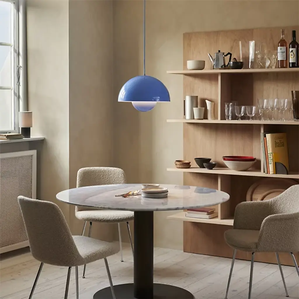 Synonymous with the Flower Power movement from the late 60s, the Flowerpot VP7 Pendant by &Tradition comes from Copenhagen-based architect and designer Verner Panton. Designed in 1968, the simple silhouette of this pendant embraces his mindset and takes a break from convention to showcase a more open, modern mentality. Two shades made from deep-drawn metal are paired together and suspended from a single cord, perfect to accent spaces alone or to be clustered together to create a harmonious, artful display of light.