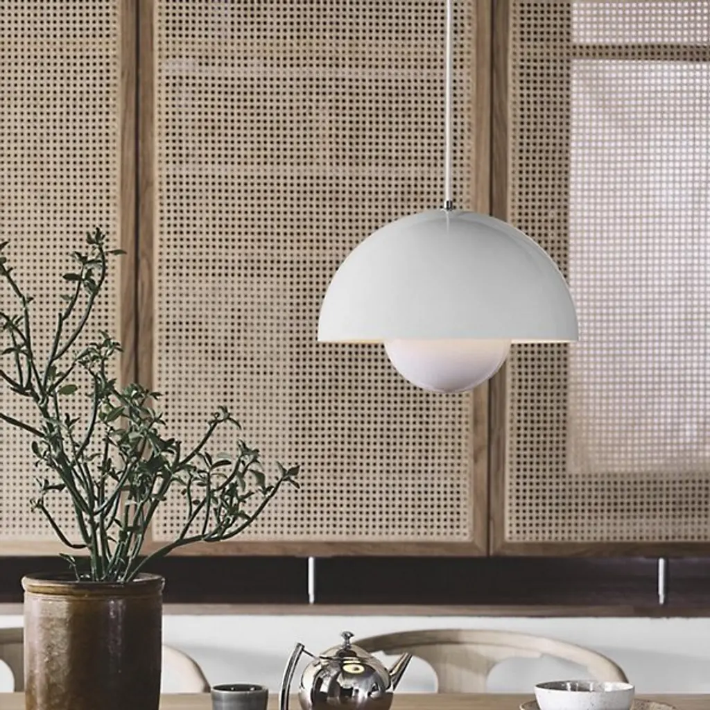 Synonymous with the Flower Power movement from the late 60s, the Flowerpot VP7 Pendant by &Tradition comes from Copenhagen-based architect and designer Verner Panton. Designed in 1968, the simple silhouette of this pendant embraces his mindset and takes a break from convention to showcase a more open, modern mentality. Two shades made from deep-drawn metal are paired together and suspended from a single cord, perfect to accent spaces alone or to be clustered together to create a harmonious, artful display of light.