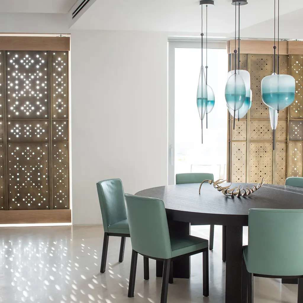 The reflections of the Venetian cityscape shimmering in the evening water hints at an imaginary city below the moving surface. There is a border between the world under and the land above. In the city of Venice, where the real world and fantasy coexists, this pendant lamp is the embodiment of the beauty of dual worlds. Perfectly matches with other pendant lamps from the same collection. Also available in a white finish.