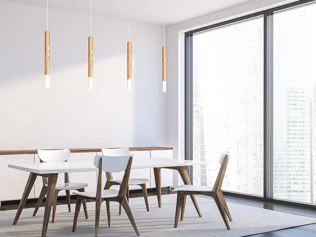 Flute is an exceptionally slim semi-wooden white pendant light. Its small form makes Flute work best when arranged in groups, such as in a line over a dining table. Featuring a long wooden upper body and a bottom with a matt white light source, Flute is designed for aesthetics. It accommodates a single G9 LED bulb and comes with a three-meter cord for versatile installation.1 x G9, max 5W