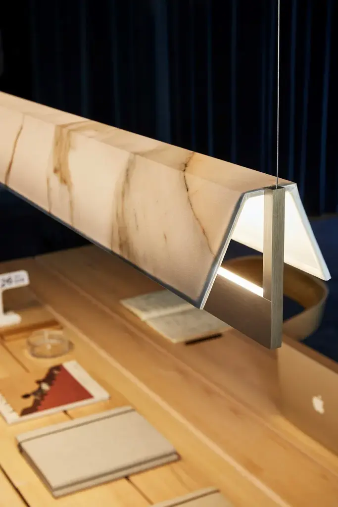 Fly is a LED metal pendant lamp.Light source double emission:So L.120Upper:1 x 23WStrip LED2.700 K; CRI: >90IP20Lower:1 x 17WStrip LED2.700 K; CRI: >90IP20So L.170Upper:1 x 33WStrip LED2.700 K; CRI: >90IP20Lower:1 x 24WStrip LED2.700 K; CRI: >90IP20A decisive statement. A light-bar that is as thin as a blade, as sharp as a cut. Fly is a flexible lamp that can be used in several rooms of the house, or in the contract and hospitality sector. When used with the upper or front textile diffuser in the wall version, it becomes a piece of furniture – almost a luminous sculpture, especially when it is repeated, or combined in different ways. The lamp’s versatility and its modernity are evident, with a wide range of applications.