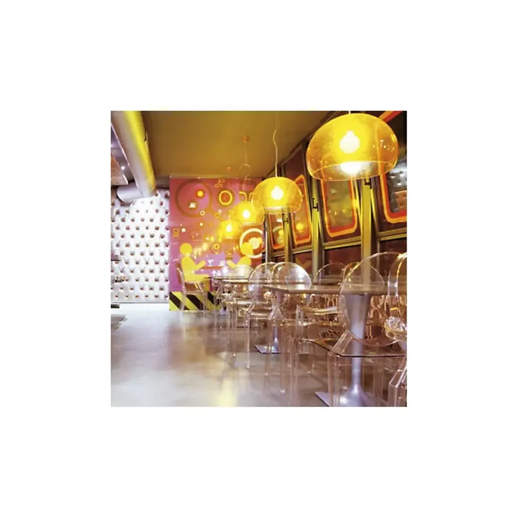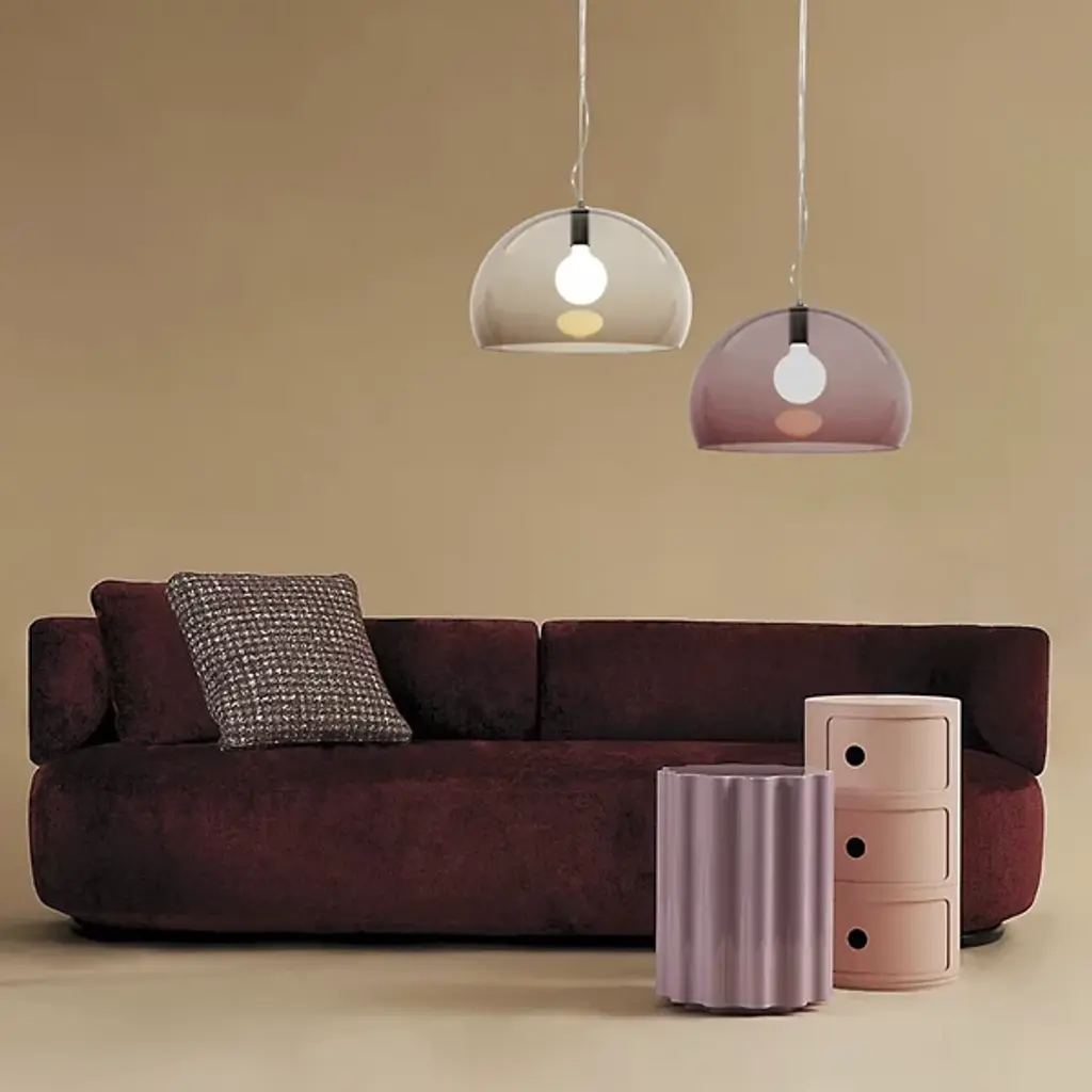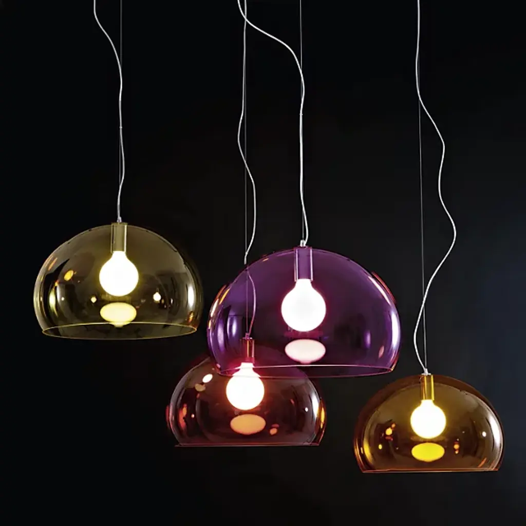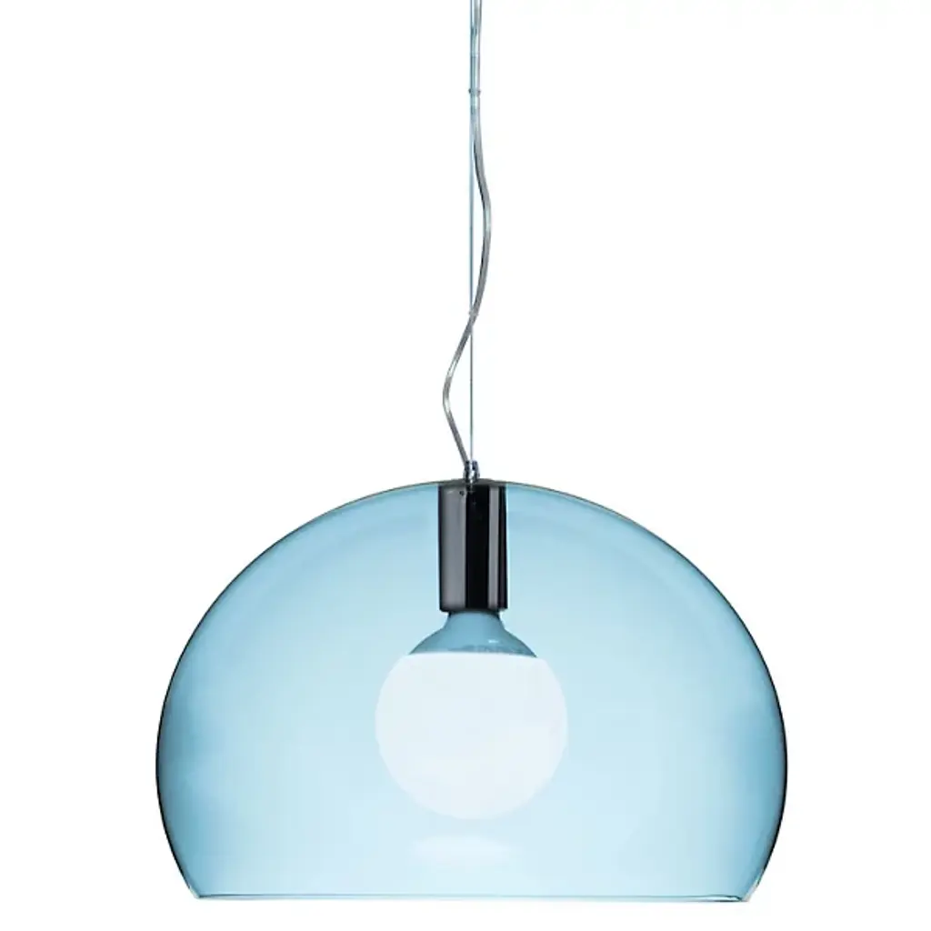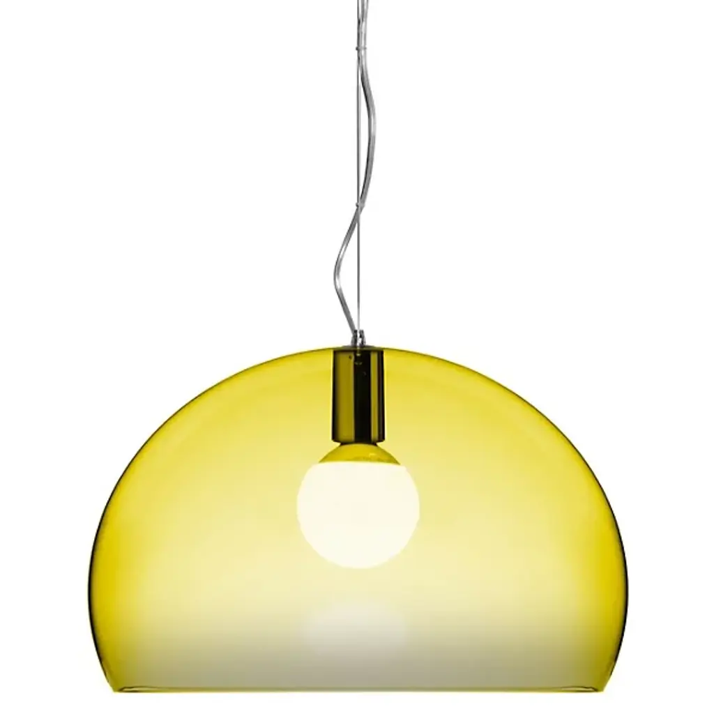 Originally designed in 2002 by Ferruccio Laviani, the Kartell FL/Y Pendant Light features a collection of dome shades available in a vibrant range of colors. The gradual concave curve at the base is the defining characteristic of the design, actualizing the dual use of ambient and functional down lighting. The batch-dyed thermoplastic shade is crisp in transparent finishes, bringing to mind the lightness and iridescence of a soap bubble in bright light.