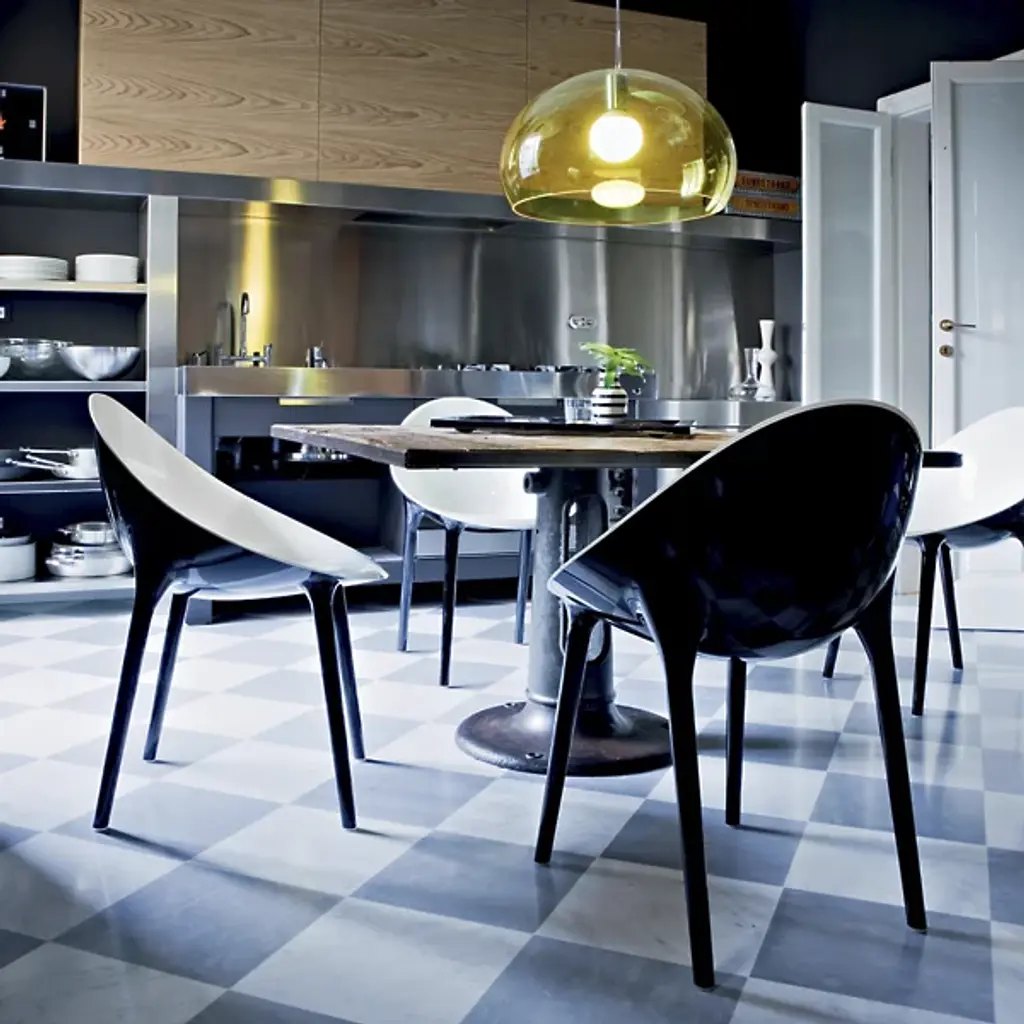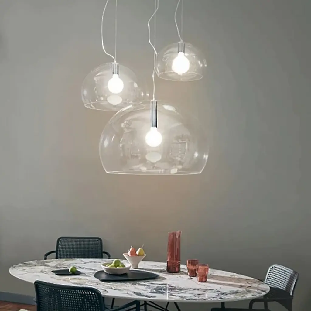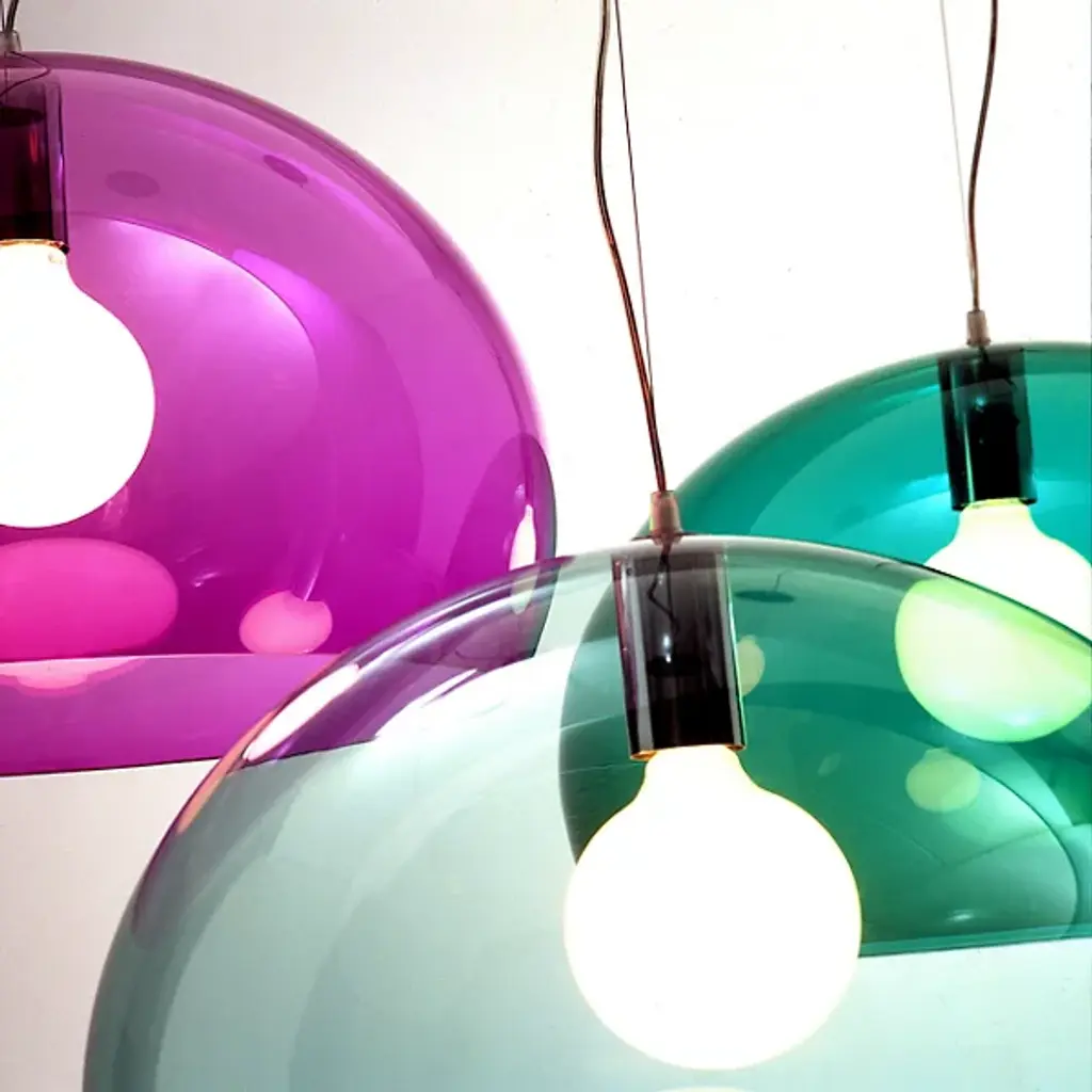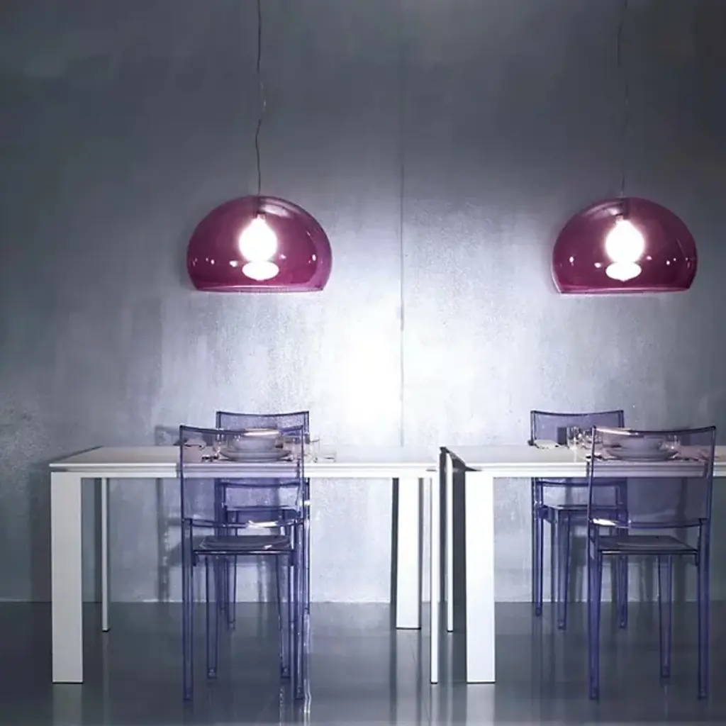 Originally designed in 2002 by Ferruccio Laviani, the Kartell FL/Y Pendant Light features a collection of dome shades available in a vibrant range of colors. The gradual concave curve at the base is the defining characteristic of the design, actualizing the dual use of ambient and functional down lighting. The batch-dyed thermoplastic shade is crisp in transparent finishes, bringing to mind the lightness and iridescence of a soap bubble in bright light.