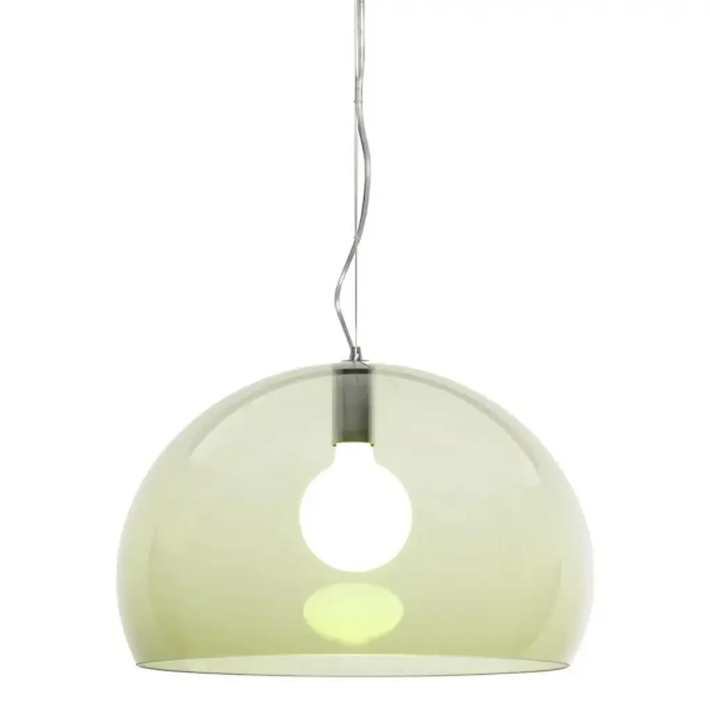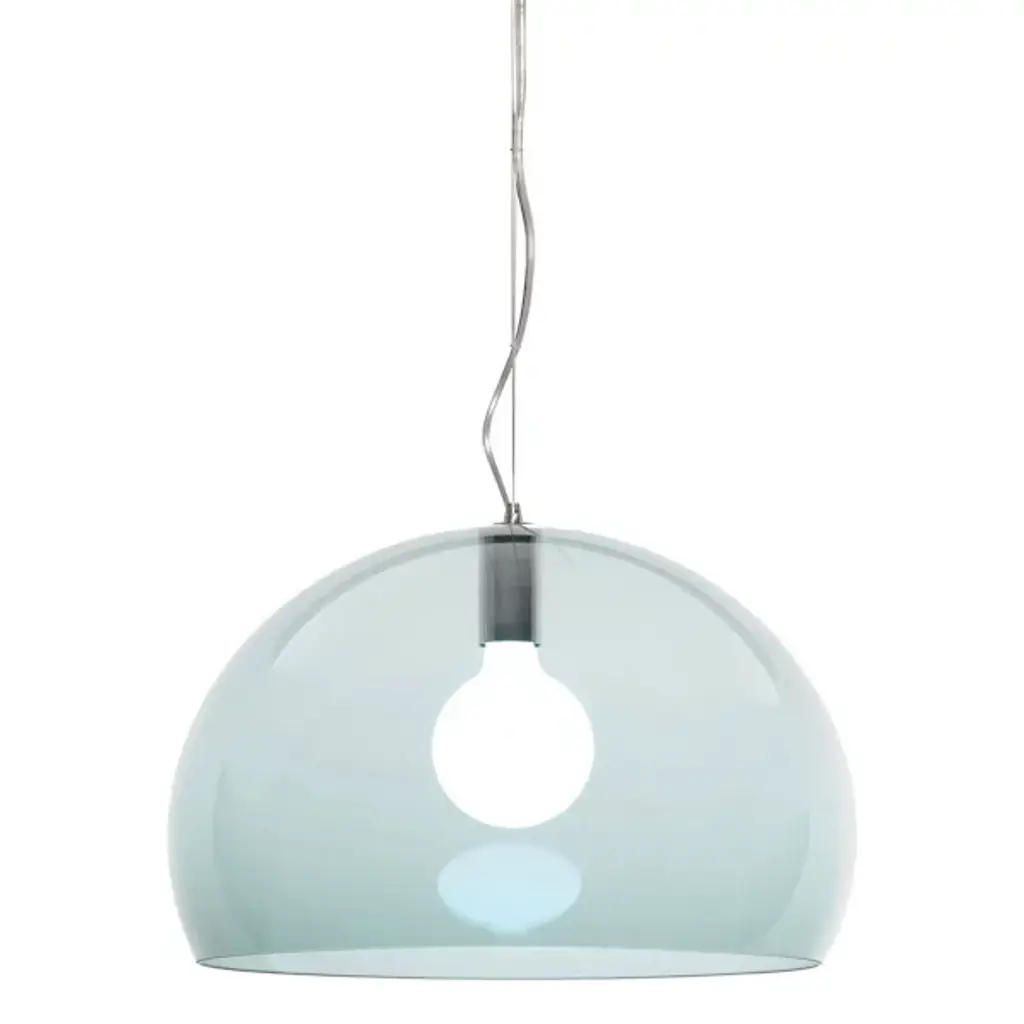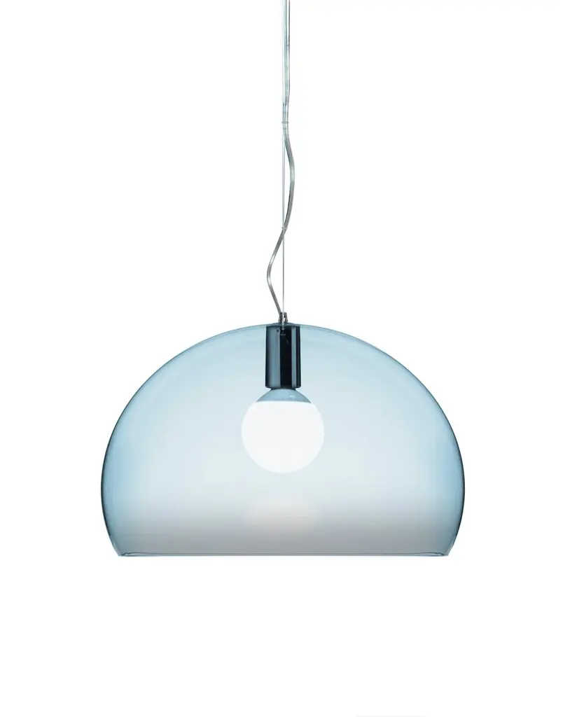 Kartell's FL/Y pendant lamp provides a pleasant general light and looks great above your dining table. The lamp features a transparent acrylic shade that filters the light beautifully. Pick your favorite from a wide selection of colors. The pendant lamp was designed by Ferruccio Laviani in 2002.
