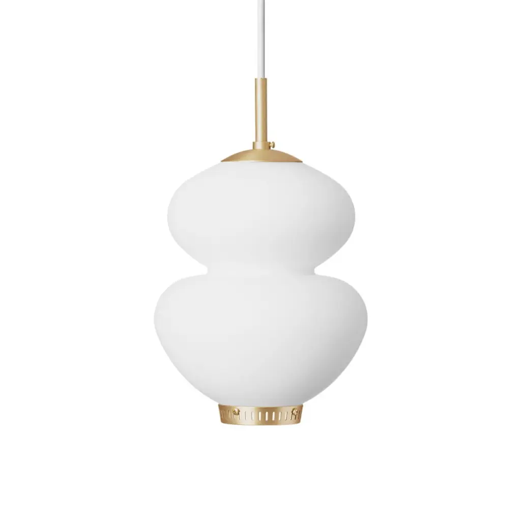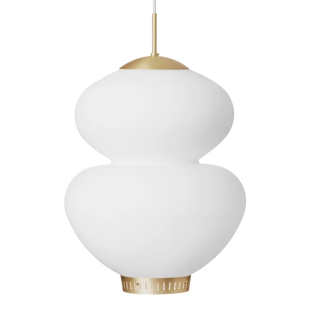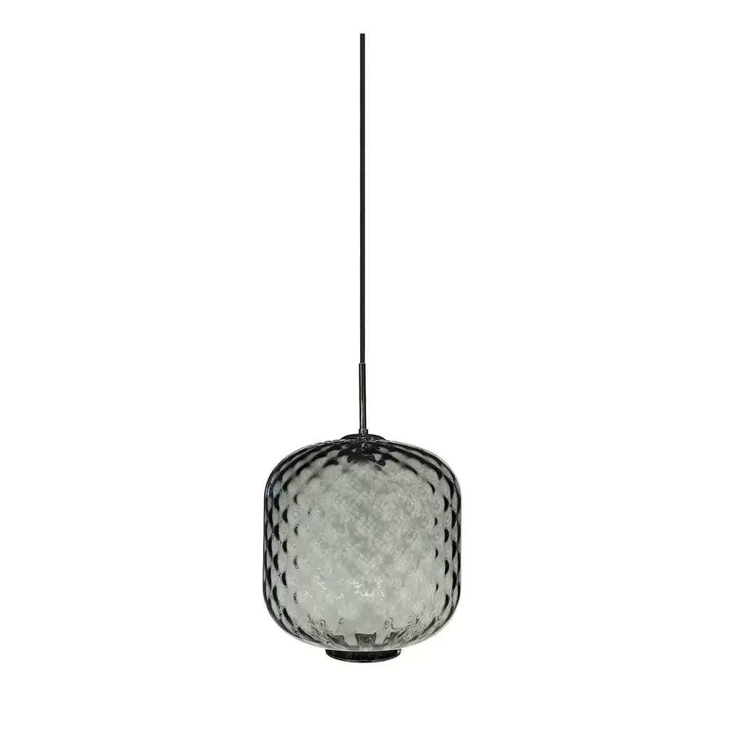 Murano glass pendant lamp.The collection has four different shapes, in smooth and transparent blown glass. The gold leaf is applied after the whole production cycle is completely processed by hand; it consists of blowing, tempering, cutting and grinding. The gold leaf is patiently glued to allow light to pass through the cracks that are formed in a natural way during application.