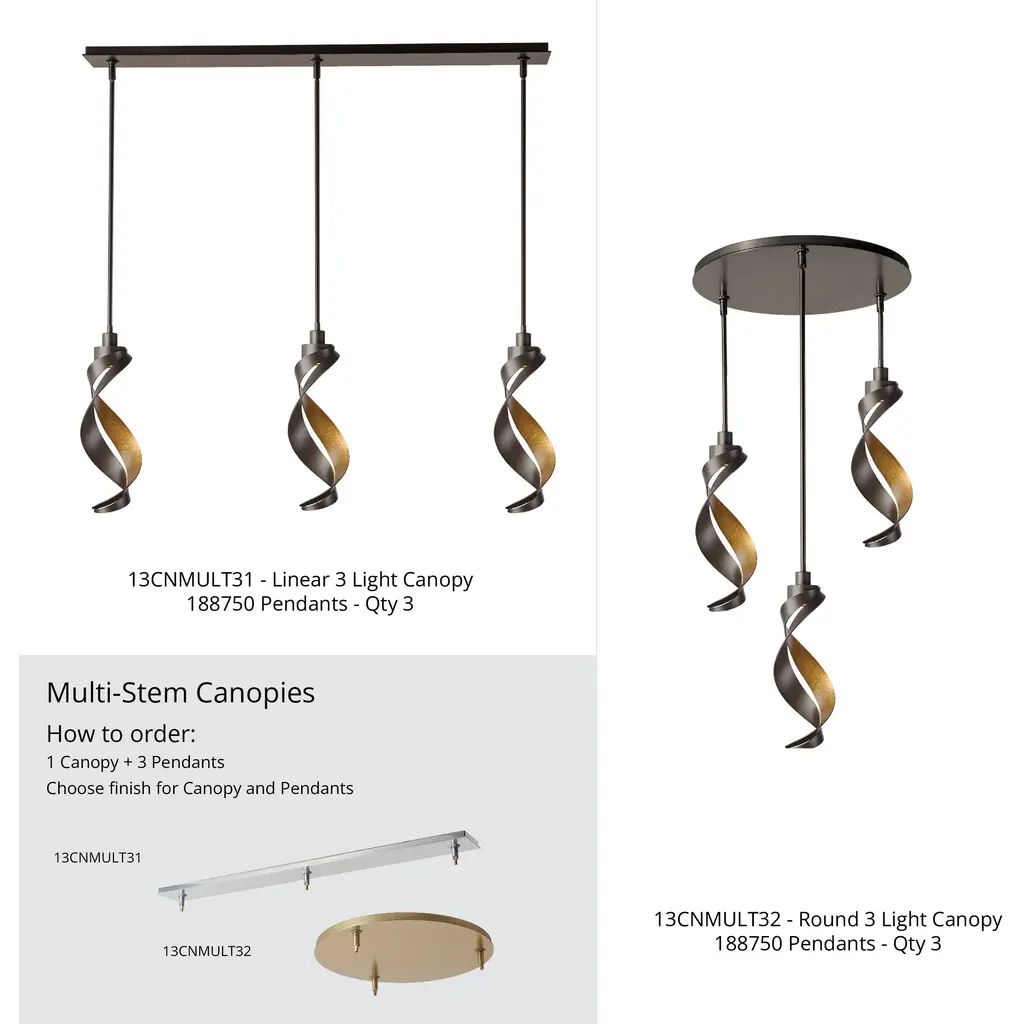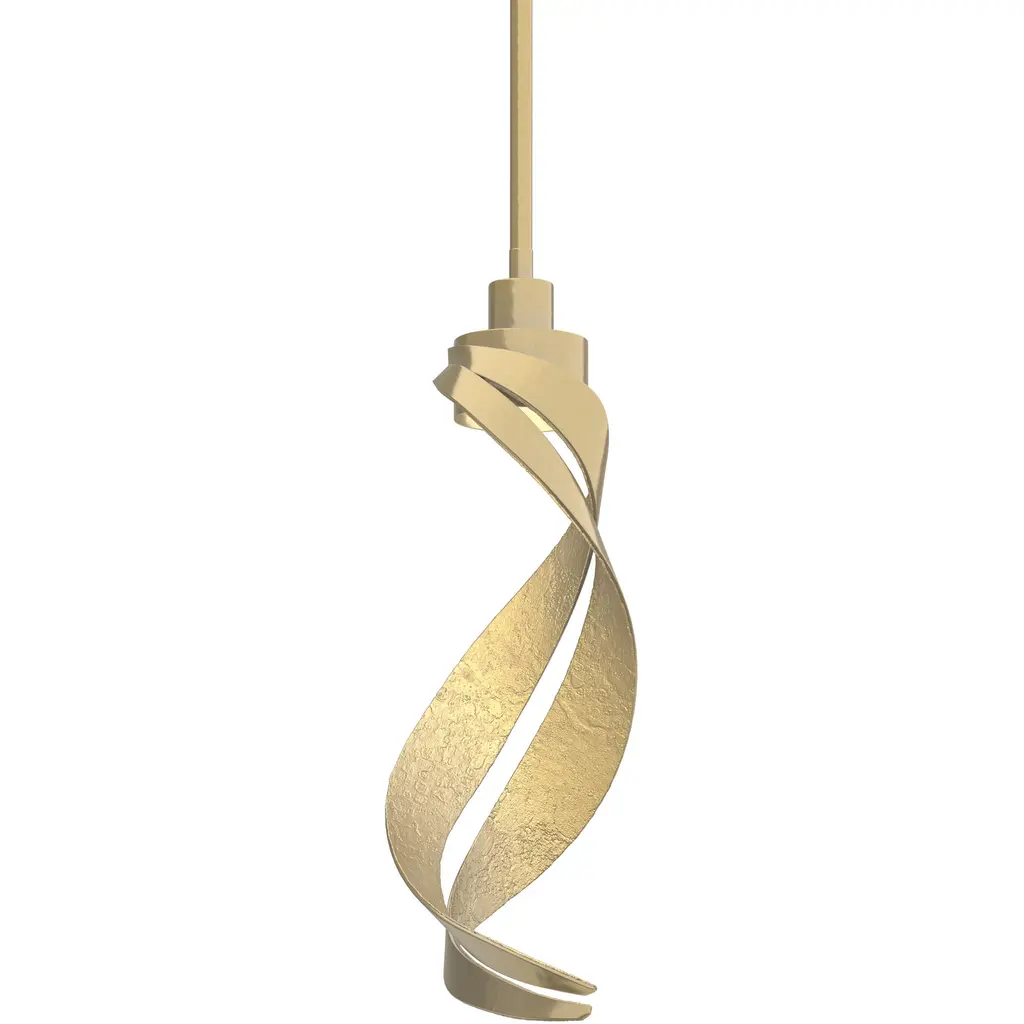 Two ribbons of hand-forged steel dance around each other as they drop from the light. Light reflects off the ribbon interiors to cast an attractive glow. Handcrafted by artisans here at our forge in Vermont, this pendant makes a statement.