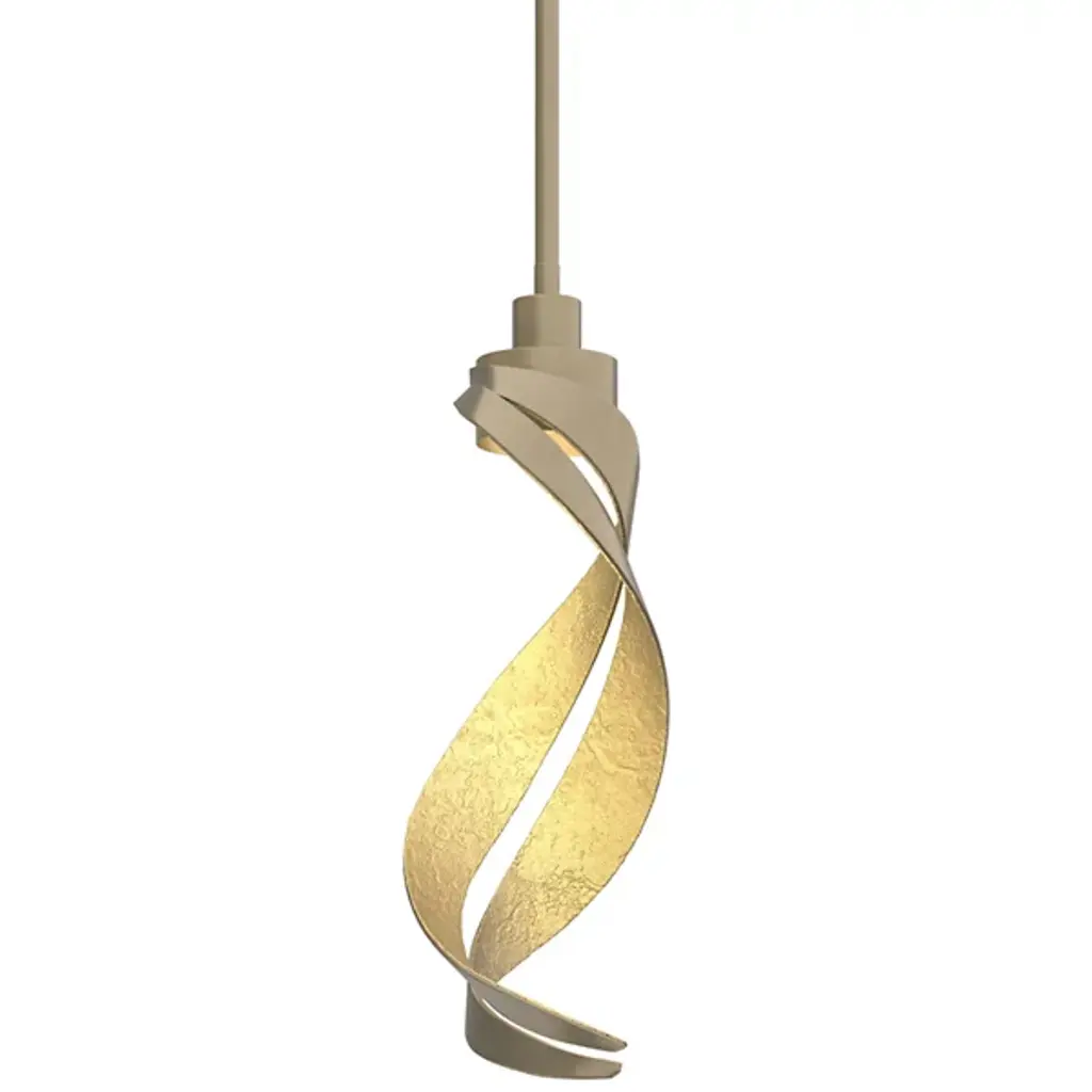 A simple swirling silhouette lends effortless elegance to the Hubbardton Forge Folio Mini Pendant. Hand-forged wrought iron is fashioned into a loose spiral that draws the eyes upwards as it ascends to the adjustable suspension stem. Light from the small, tiered support cascades down the inner curves of the ironwork, highlighting its unique texture. Hang several to create a sense of relaxed motion over countertops or bars.