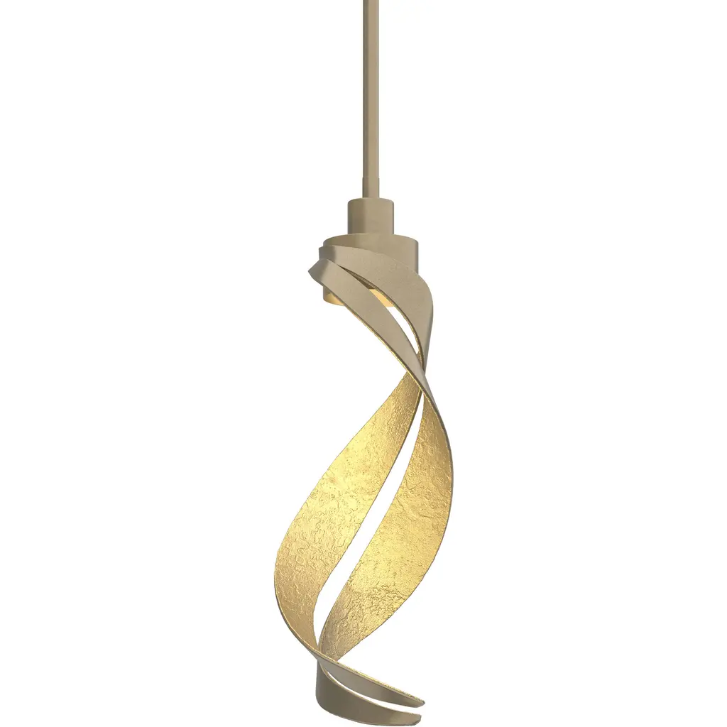 A simple swirling silhouette lends effortless elegance to the Hubbardton Forge Folio Mini Pendant. Hand-forged wrought iron is fashioned into a loose spiral that draws the eyes upwards as it ascends to the adjustable suspension stem. Light from the small, tiered support cascades down the inner curves of the ironwork, highlighting its unique texture. Hang several to create a sense of relaxed motion over countertops or bars.