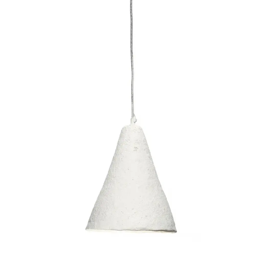 A popular handcraft for generations, papier-mâché has a distinctly organic look and texture that continues to inspire contemporary artisans. We keep it fresh and modern here with pendants in clean, classic shapes in a cloudlike off-white. Arrange three in a row over a kitchen island, or install a grouping over a dining table for a unique twist on the traditional.