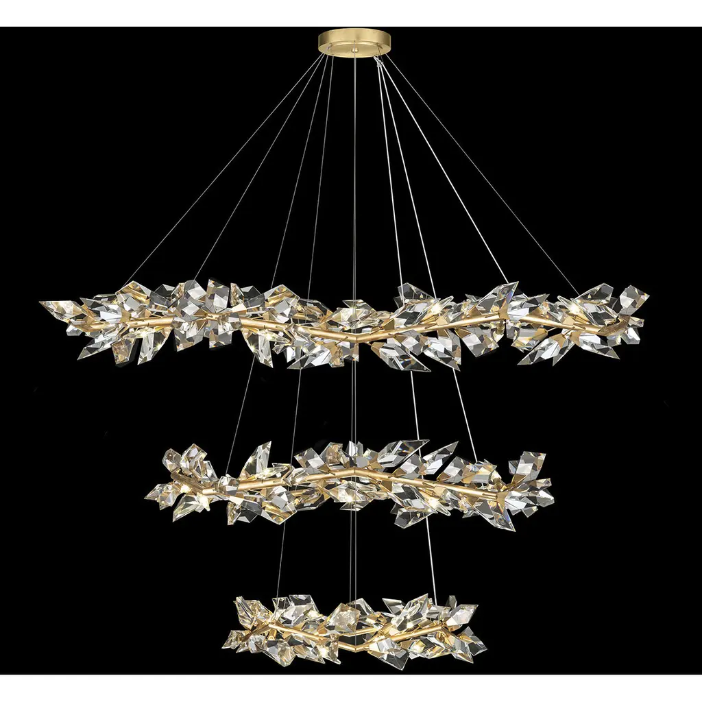Inspired by nature and its majestic forests, this gold leafed Foret pendant features modern branches adorned with bold, hand-cut faceted crystal leaves. Also available in silver leaf.