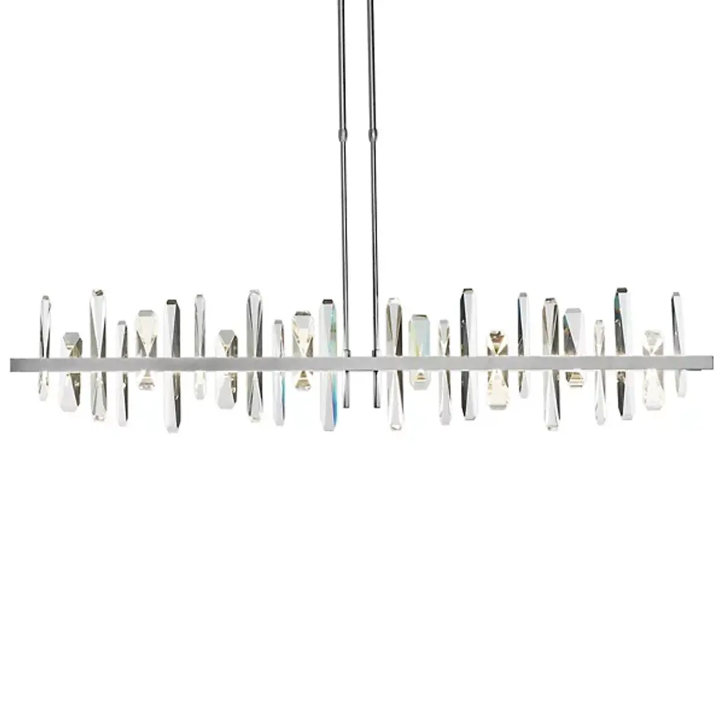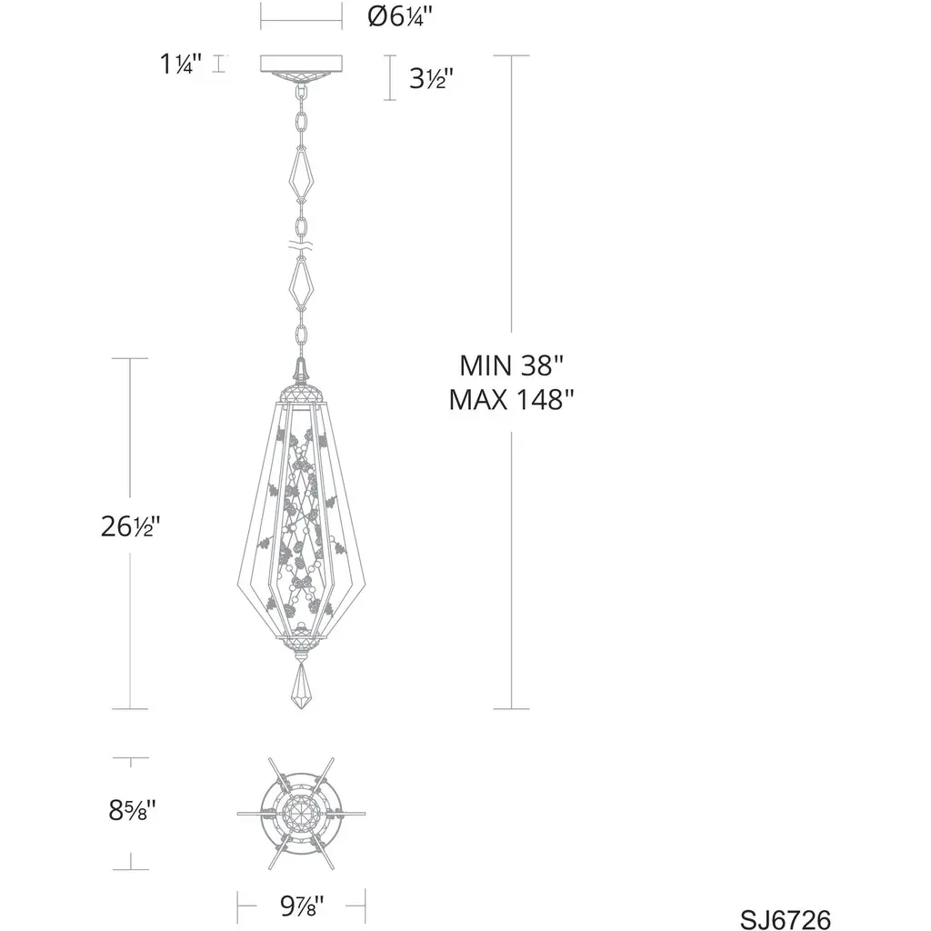 A masterful creation that softens a geometric frame with crystal and light. Showcasing a dramatic crystal-dusted inner diffuser captured by a fine net of shimmering crystal and lustrous angled bands, LED illumination reflects shards of fiery brilliance from this multi-layered luminaire. Schonbek Forever LED luminaires feature a 3-CCT color temperature selectable switch that can be accessed at the time of installation to toggle between 3000K-3500K-4000K color temperatures. Constructed of steel and aluminum. Schonbek Radiance crystal is the finest quality, free of flaws or imperfections and engineered for optimal brilliance and optical purity. Radiance crystals originate from Europe using a state of the art process that doubles the amount of jewel-cut facets. Lavished with gleaming hints of Swarovski pearls. Chain suspended from a canopy with crystal bobeche using up to 40in of matching chain that can be field adjusted (additional chain sold separately). Fixture includes 10ft of wire for a maximum suspension up to 10ft. Can be installed on a slope ceiling up to a 40 degree slope.