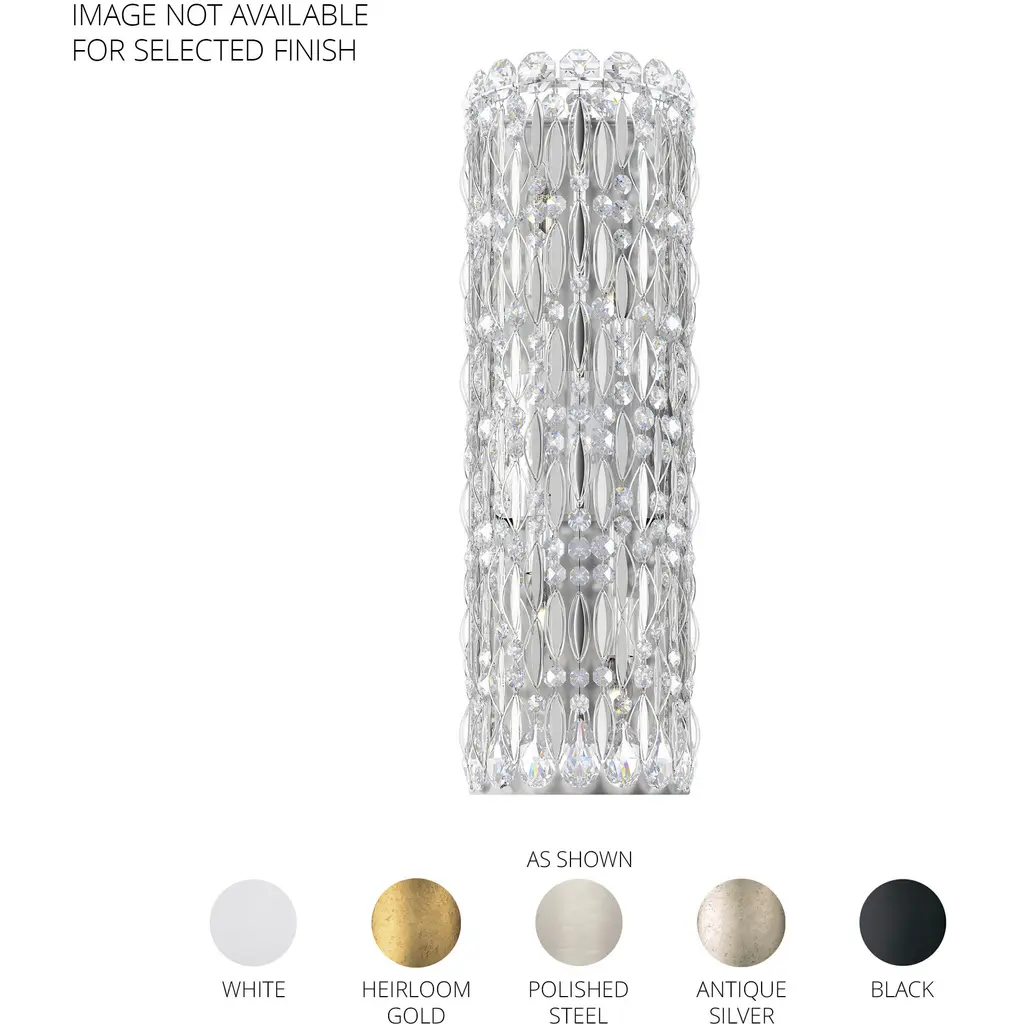 Bound to become a modern heirloom, this luxe pendant showcases a glittering chain of Radiance crystal dust beads, each bound by lustrous metallic cuffs. LED's cast a glittering glow of illumination, offering just the right touch of sparkle to accessorize luxury settings. Schonbek Forever LED luminaires feature a 3-CCT color temperature selectable switch that can be accessed at the time of installation to toggle between 3000K-3500K-4000K color temperatures. Seduction is a modular pendant system with electronics powered by WAC, enabling a max run length of 66 lights or 240in length. 6 Light, 9 Light, 12 Light, and 22 Light pendants hang straight down with optional second canopy sold separately. 28 Light, 33 Light, and 66 Light configurations include two canapies to swag into U-shape. Constructed of steel featuring Schonbek Radiance Crystal Dust with thousands of diamond machine-cut and polished crystals cemented on the inside of a faceted Radiance Crystal, offering a superb refraction of light. Available in two mounting options - slim canopy with remote driver (driver sold separately) for installation up to 100ft away or with a canopy that has driver included concealed on the inside for mounting to an electrical junction box.