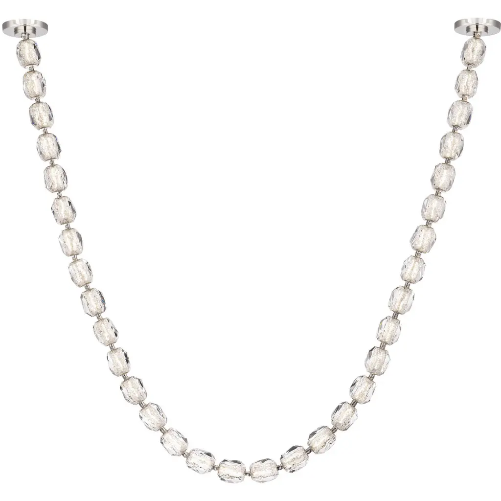 Bound to become a modern heirloom, this luxe pendant showcases a glittering chain of Radiance crystal dust beads, each bound by lustrous metallic cuffs. LED's cast a glittering glow of illumination, offering just the right touch of sparkle to accessorize luxury settings. Schonbek Forever LED luminaires feature a 3-CCT color temperature selectable switch that can be accessed at the time of installation to toggle between 3000K-3500K-4000K color temperatures. Seduction is a modular pendant system with electronics powered by WAC, enabling a max run length of 66 lights or 240in length. 6 Light, 9 Light, 12 Light, and 22 Light pendants hang straight down with optional second canopy sold separately. 28 Light, 33 Light, and 66 Light configurations include two canapies to swag into U-shape. Constructed of steel featuring Schonbek Radiance Crystal Dust with thousands of diamond machine-cut and polished crystals cemented on the inside of a faceted Radiance Crystal, offering a superb refraction of light. Available in two mounting options - slim canopy with remote driver (driver sold separately) for installation up to 100ft away or with a canopy that has driver included concealed on the inside for mounting to an electrical junction box.
