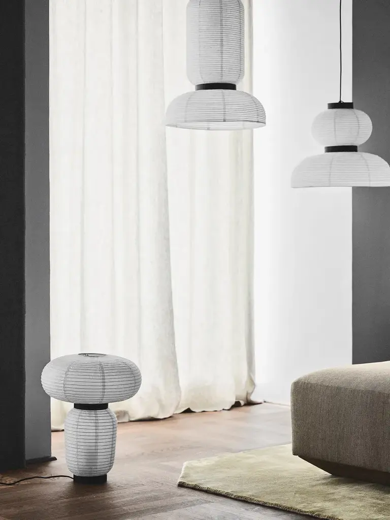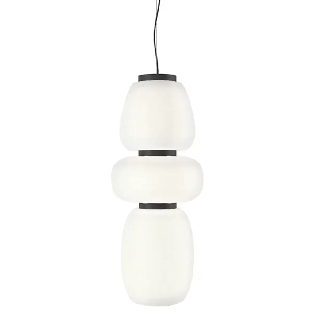 East meets West in Jaime Hayon’s playful tweak of a traditional Asian lantern in contemporary expression. Dating back centuries, paper lanterns have featured in Asia amongst the privileged and the poor, where different colours, shapes and sizes connote different meanings. Here Hayon has dispensed with cultural formalities to create a series of lamps all in white. Hand crafted with rice paper merging various sizes and shapes together with black stained oak accents.Production processHandmade rice paper pendantEnvironmentIndoorMaterialIvory white paper, black stained oak, 4 meter black fabric cordColoursIvory WhiteVoltage220-240V – 50HZLight source & energy efficiency class2 x E27 Max 60 WattThe luminaire is compatible with bulbs of energy class: A++ – EBulb is not included. Canopy includedCord length400cm/157.5inCertificationsCE, IP20, Class IICleaning instructionsClean with soft dry cloth. Always switch off the electricity supply before cleaning