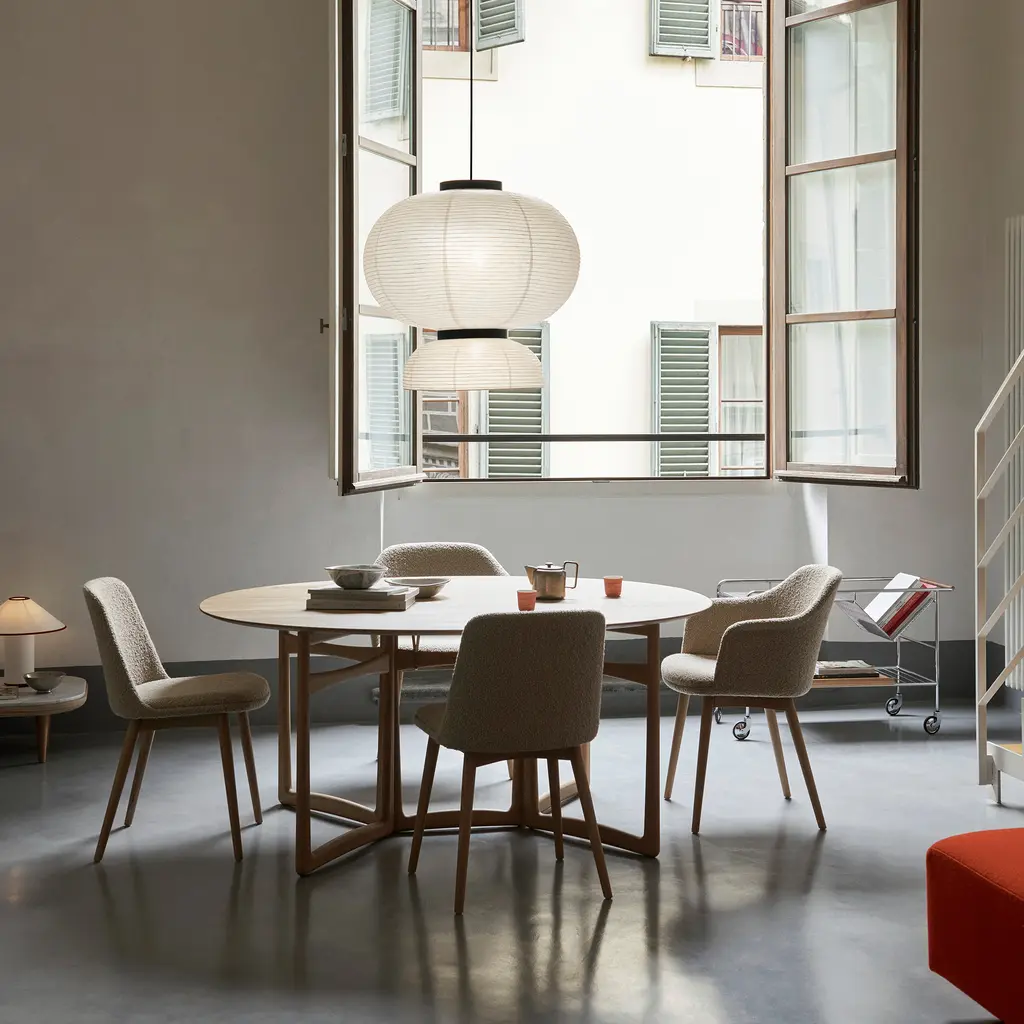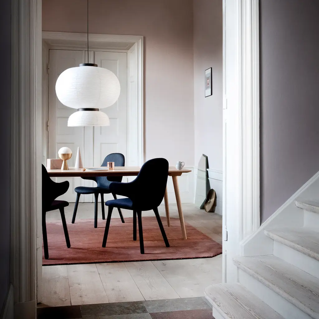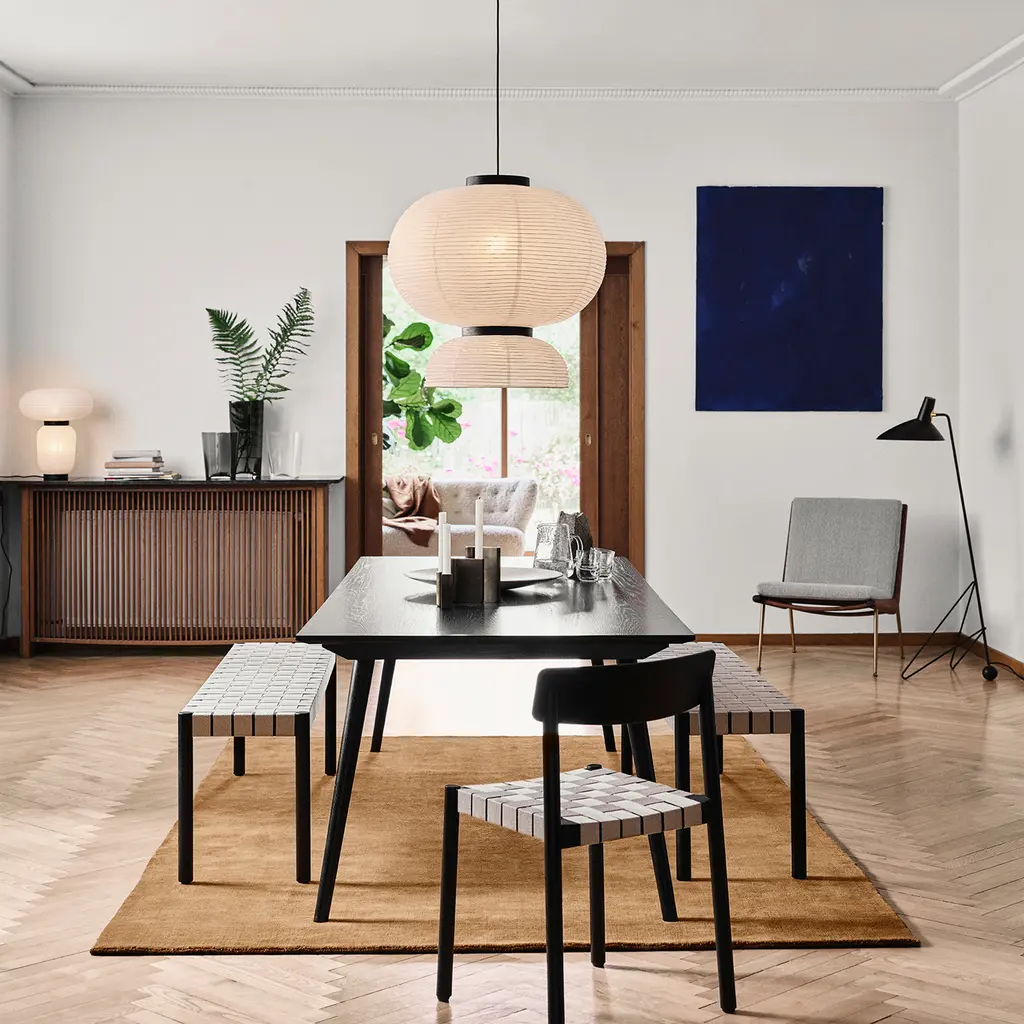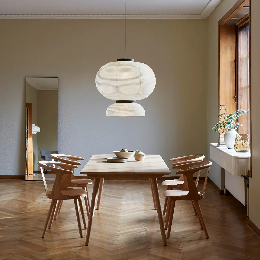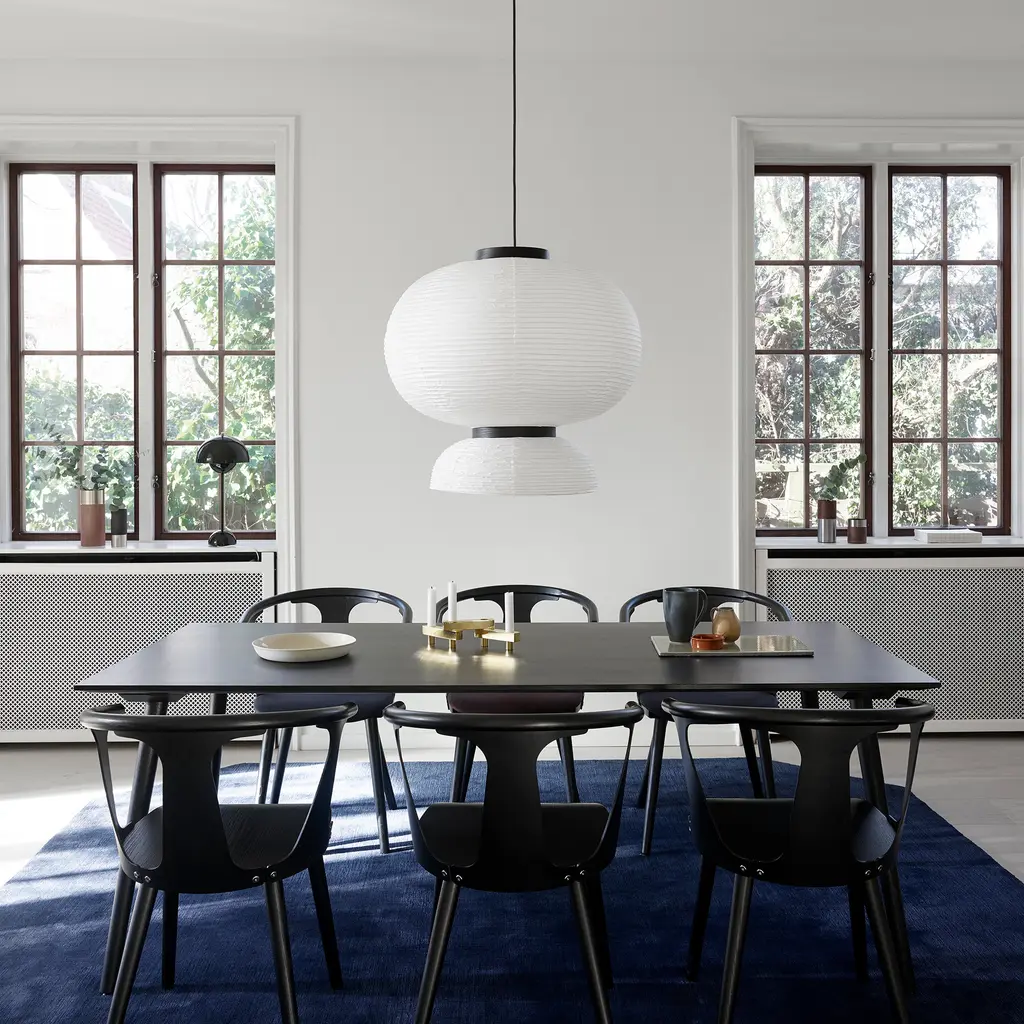 Experience the grandeur of the Formakami Pendant JH5, a striking part of Jaime Hayon’s Formakami Collection for &tradition. Boasting the largest form amongst the pendant variations, the JH5 offers a generous round body that embodies balance and harmony. Crafted from hand-made rice paper, this pendant lamp illuminates spaces with a warmly diffused, enveloping glow. Its black lacquered oak veneer brackets delicately contour the shade, introducing a contrasting element to its radiant white complexion. The pendant is equipped with two E26 sockets, with a maximum capacity of 60 watts each. While the JH5 ensures generous illumination, it simultaneously transforms spaces with an air of serene elegance. Though the bulbs are not included, this pendant offers the liberty to choose your preferred lighting to enhance your space, making it a true beacon of personalized style and ambiance.