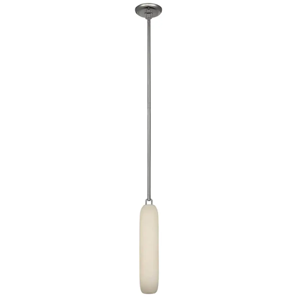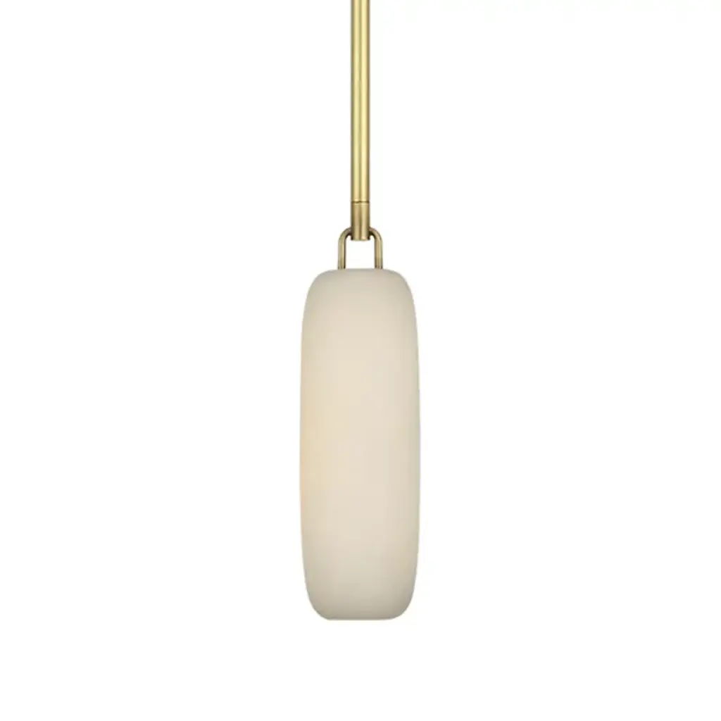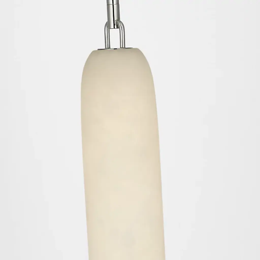 The Formosa LED Mini Pendant from Visual Comfort Signature suspends a cylindrical alabaster diffuser that transforms light into a gentle glow rather than harsh direct illumination. Kelly Wearstler's minimalist approach emphasizes the natural stone's inherent character, allowing each piece to maintain its unique identity. The brass hardware provides structural contrast to the alabaster element while complementing its natural tones. LED technology hidden within produces consistent light quality that enhances the stone's translucent properties.