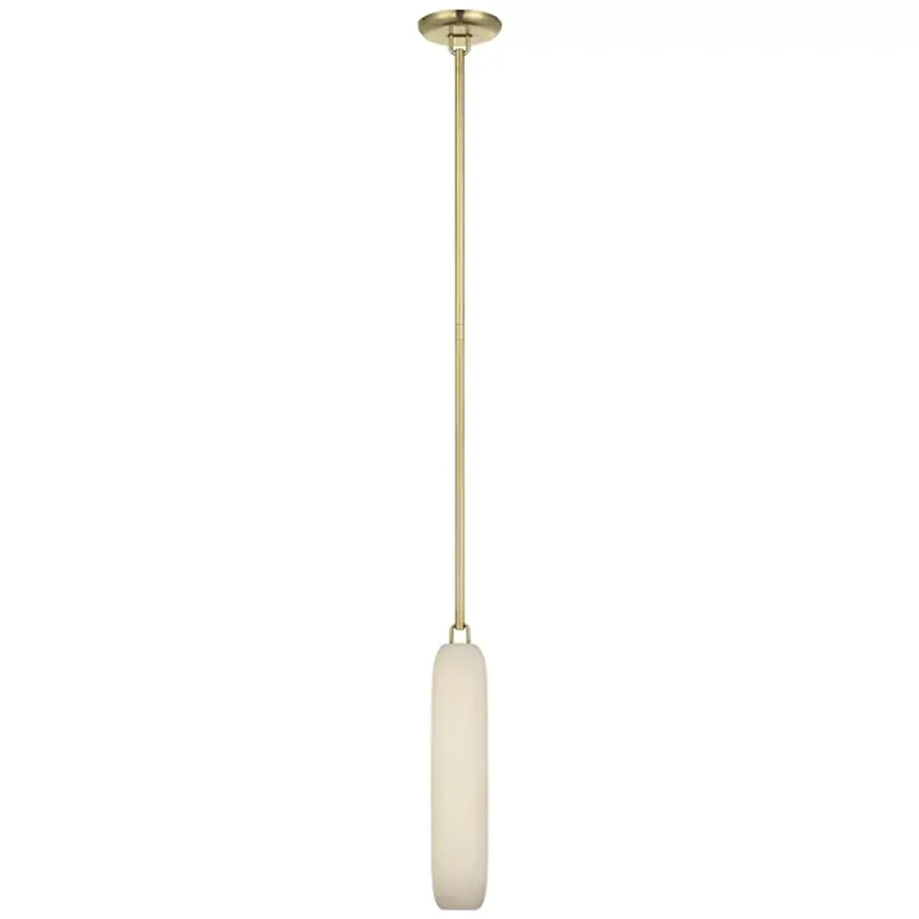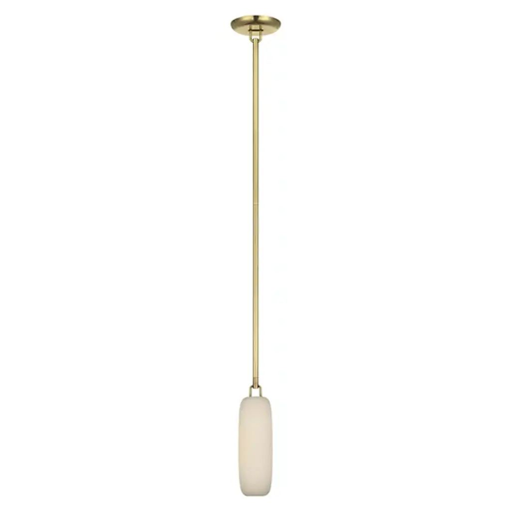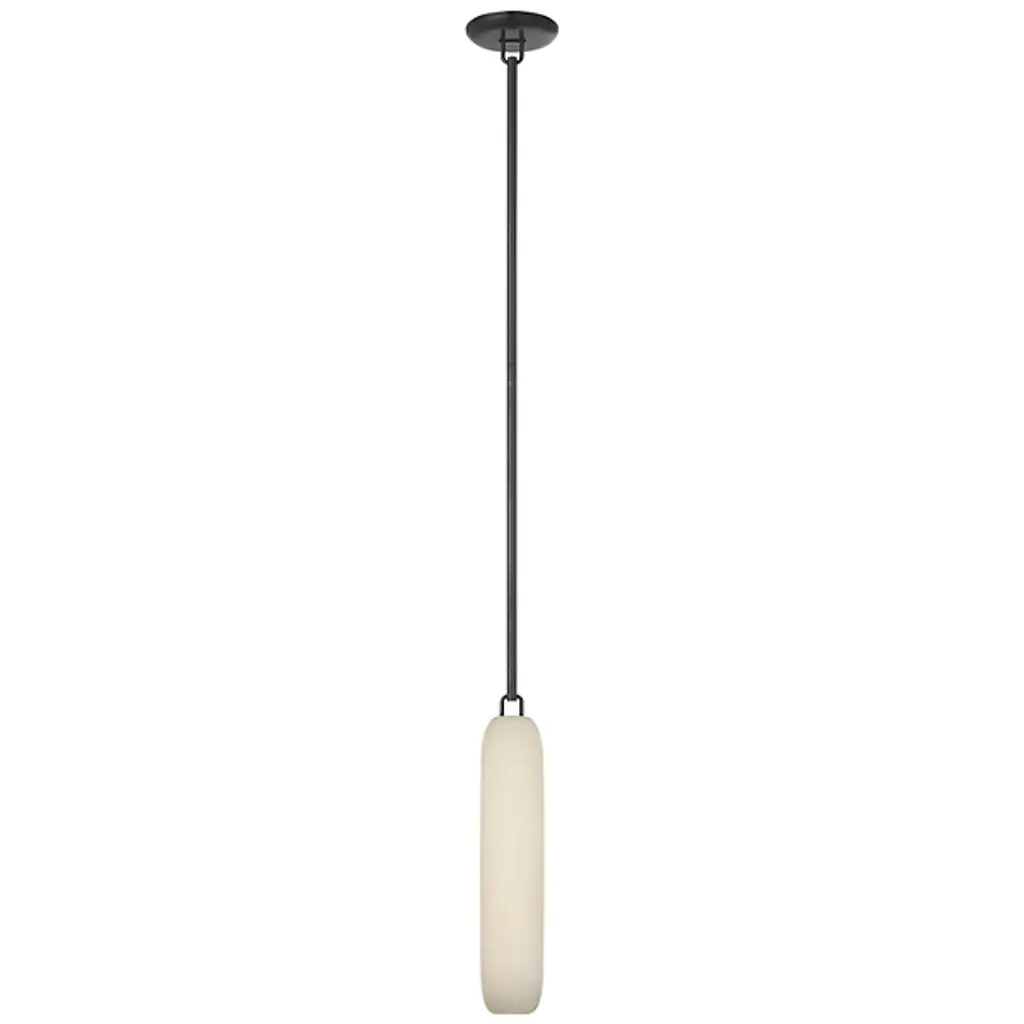 The Formosa LED Mini Pendant from Visual Comfort Signature suspends a cylindrical alabaster diffuser that transforms light into a gentle glow rather than harsh direct illumination. Kelly Wearstler's minimalist approach emphasizes the natural stone's inherent character, allowing each piece to maintain its unique identity. The brass hardware provides structural contrast to the alabaster element while complementing its natural tones. LED technology hidden within produces consistent light quality that enhances the stone's translucent properties.