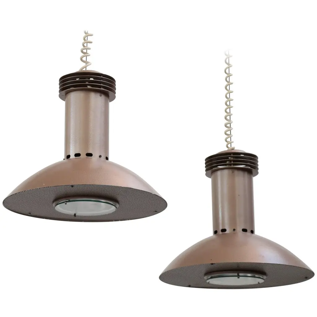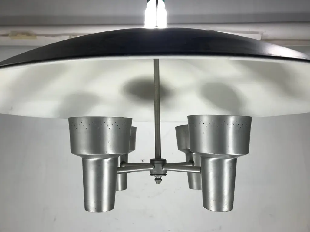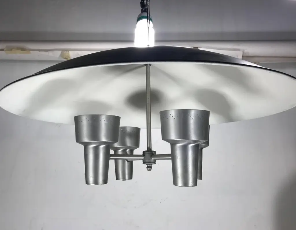 Four Modernist Aluminum Hanging Pendant Chandeliers By Lightcraft