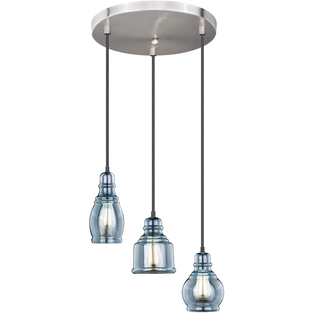 Foxwood 3 Light 12 Inch Brushed Polished Nickel Pendant Ceiling Light