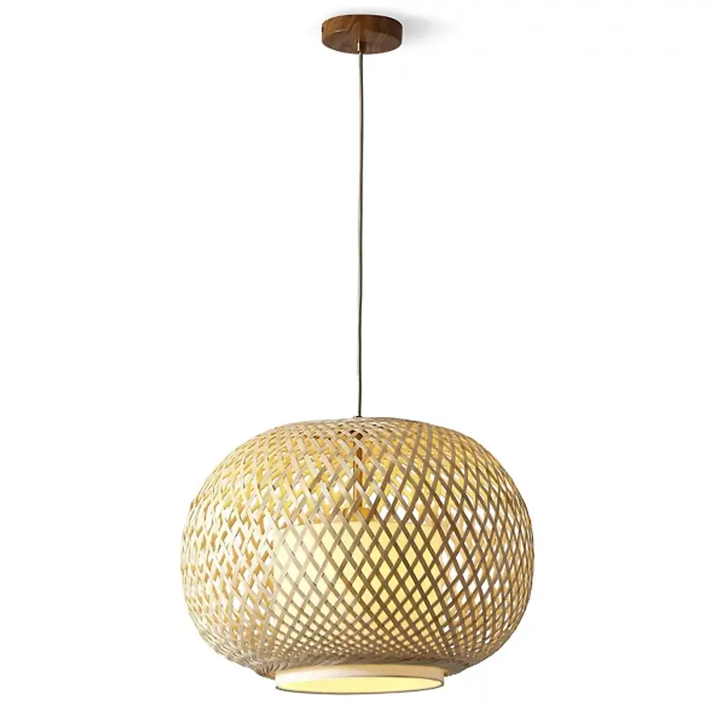 The Foxx Pendant from Alder & Ore brings a touch of glamor to your living space. It beautifully blends artisanal modern style and Bohemian flair, showcasing a glove-shaped shade of woven bamboo that neatly houses an internal shade of linen. The weave creates diamond-shaped silhouettes that form a refined pattern throughout the outer shade for visual interest. The pendant is secured by an aluminum ceiling canopy, keeping it balanced in midair.