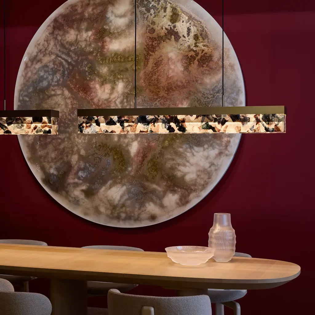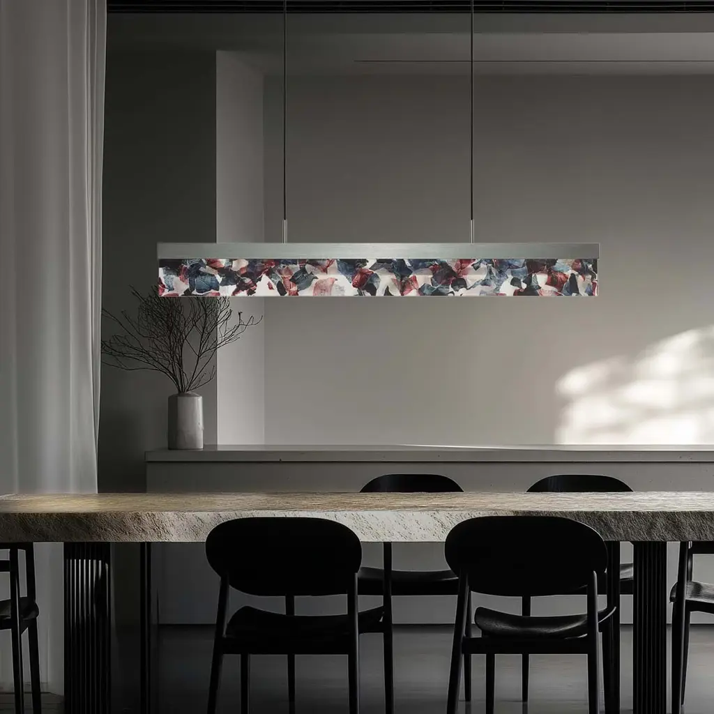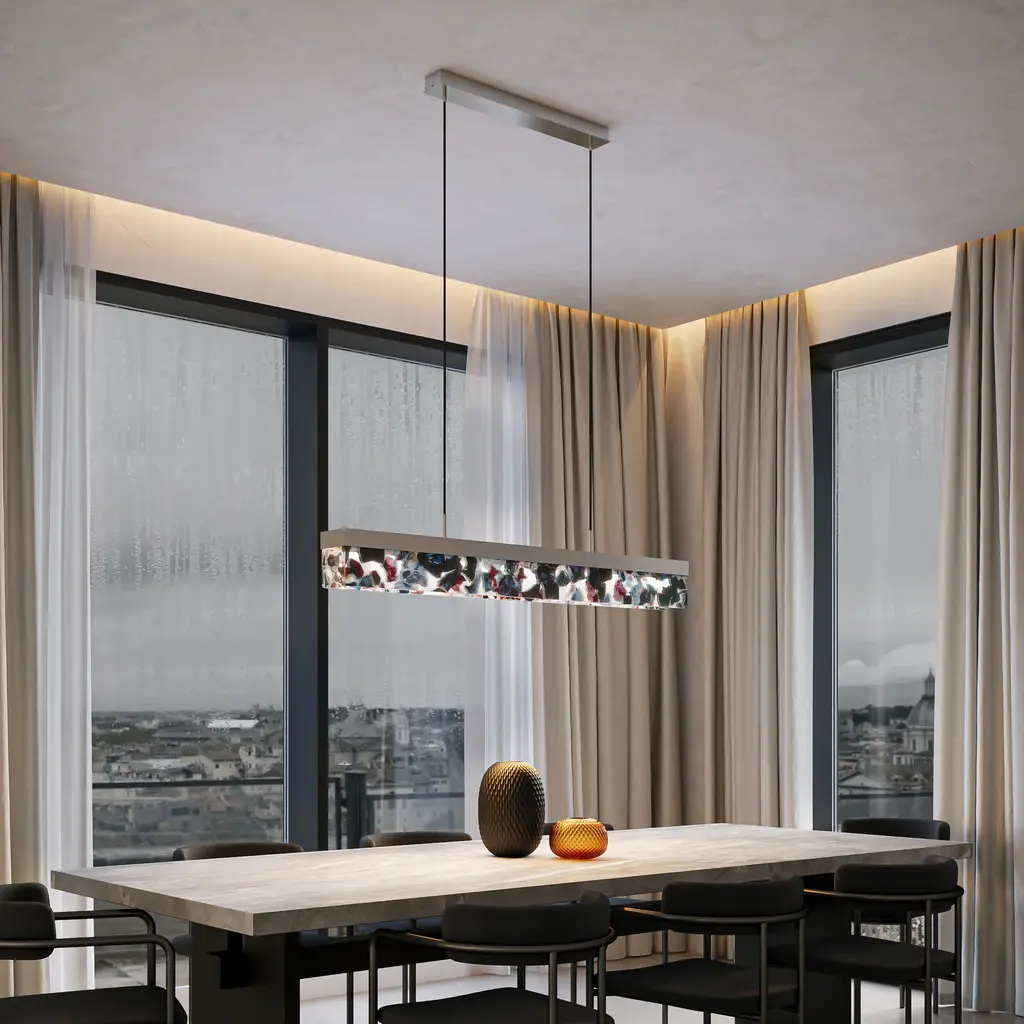 Embrace the celestial allure of the Fragment Line LED Pendant Light from Bomma. Designed by Studio DECHEM, this collection resembles a radiant galaxy, infusing spaces with a new sense of vibrancy. Like shards of glass, these handcrafted horizontal fixtures illuminate any interior with a captivating universe of light. Highlights