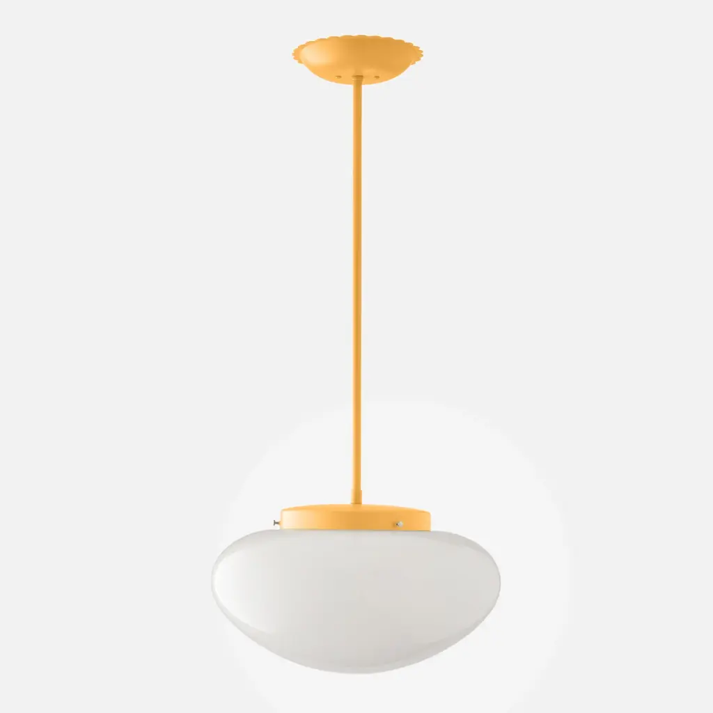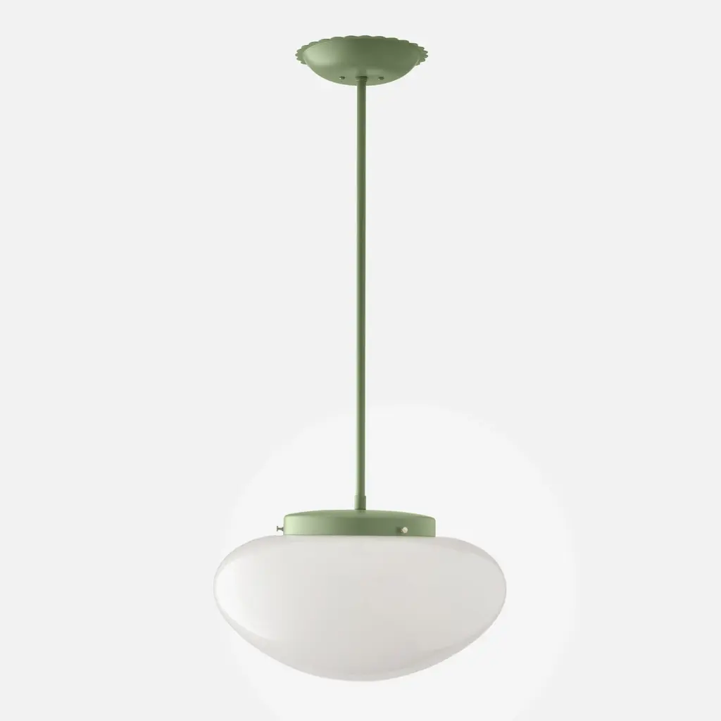 Add a romantic touch overhead with the Fran Pendant. With scalloped edge detailing inspired by San Francisco’s Victorian architecture, it manages to be charming, elegant, and graceful all at once. A variety of sizes and shades gives you a host of customizable options to choose from, from delicate to statement-making.