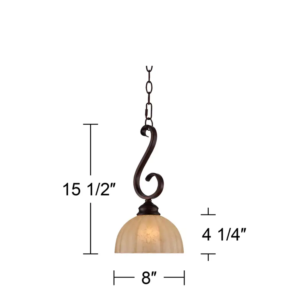 Franklin Iron Works Golden Bronze Mini Pendant Light 8" Wide Rustic Iron Scroll Amber Glass Shade Fixture for Kitchen Island