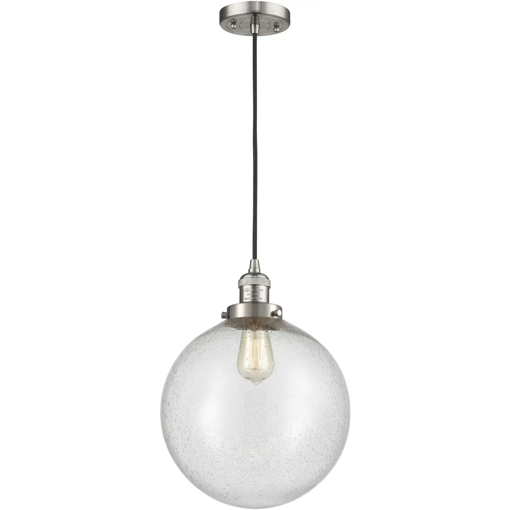 Franklin Restoration Beacon 1 Light 12 Inch Polished Nickel Mini Pendant Ceiling Light In Incandescent, Seedy, Franklin Restoration