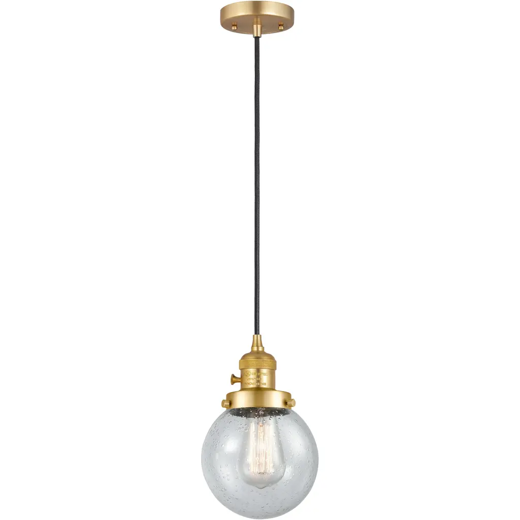 Franklin Restoration Beacon 1 Light 6 Inch Brushed Brass Mini Pendant Ceiling Light In Incandescent, Seedy, Franklin Restoration