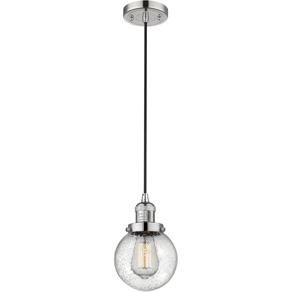 Franklin Restoration Beacon 1 Light 8 Inch Polished Nickel Mini Pendant Ceiling Light In Incandescent, Seedy, Franklin Restoration