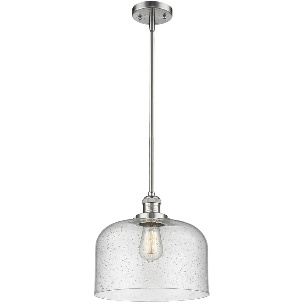 Franklin Restoration Bell 1 Light 12 Inch Brushed Satin Nickel Mini Pendant Ceiling Light In Incandescent, Seedy, Franklin Restoration