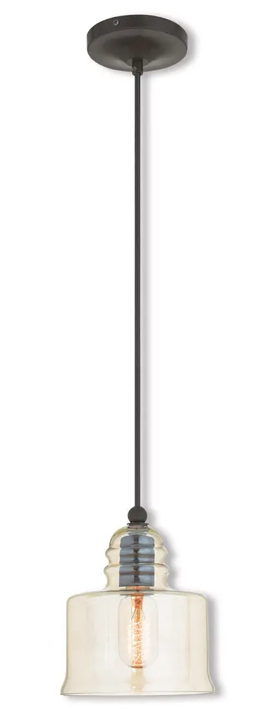 The Canton 1 Light Mini Pendant is part of the Franklin Restoration Collection. Includes 10 Feet Black Textured Cord