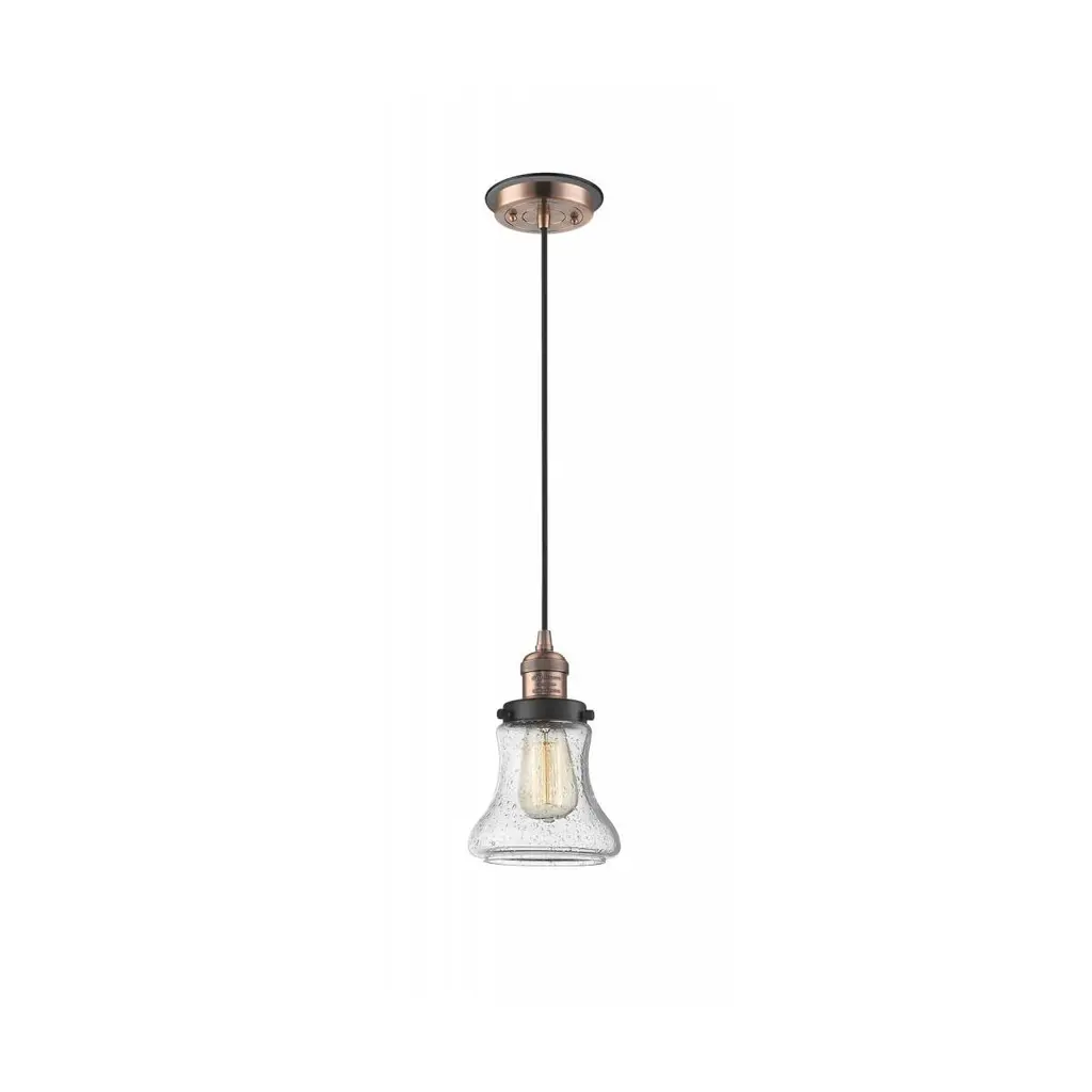 Franklin Restoration Canton 1 Light 6 Inch Antique Copper/matte Black Mini Pendant Ceiling Light In Seedy Glass