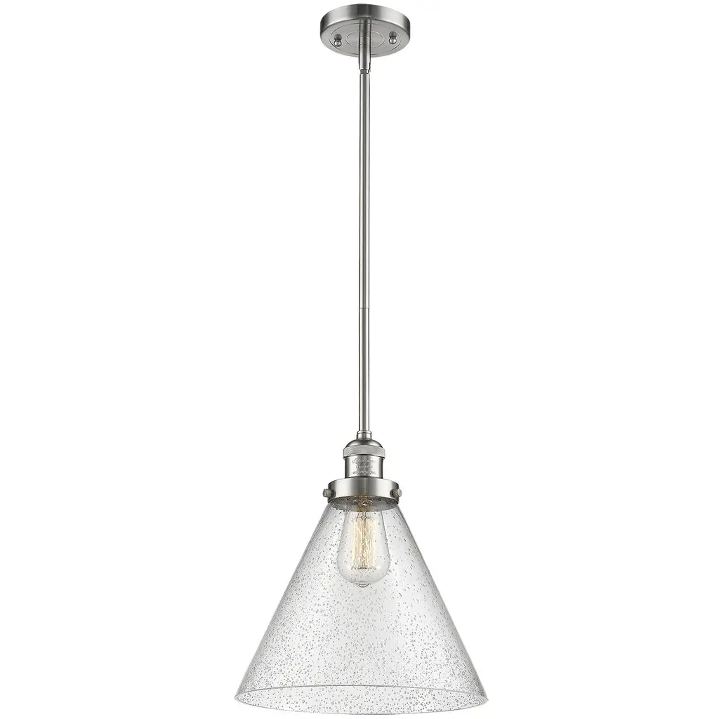 Franklin Restoration Cone 1 Light 12 Inch Brushed Satin Nickel Mini Pendant Ceiling Light In Incandescent, Seedy