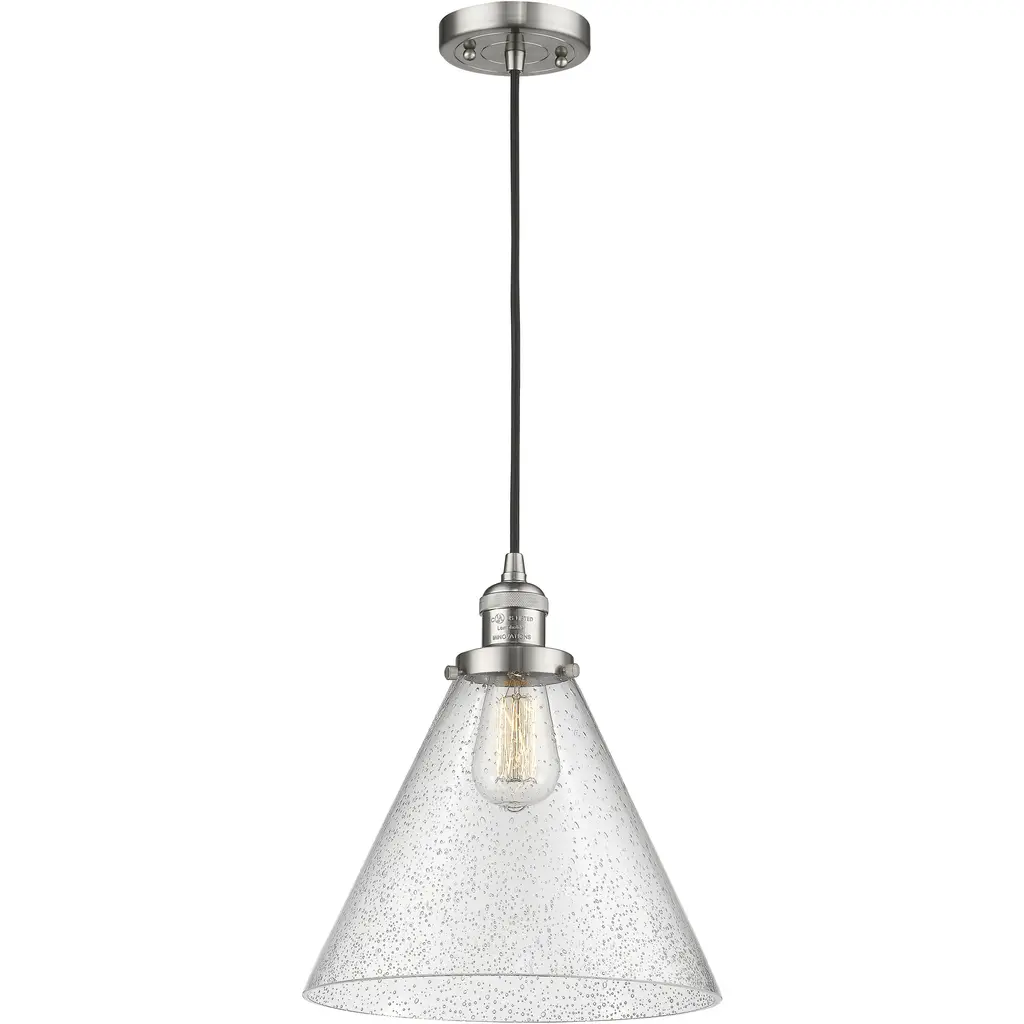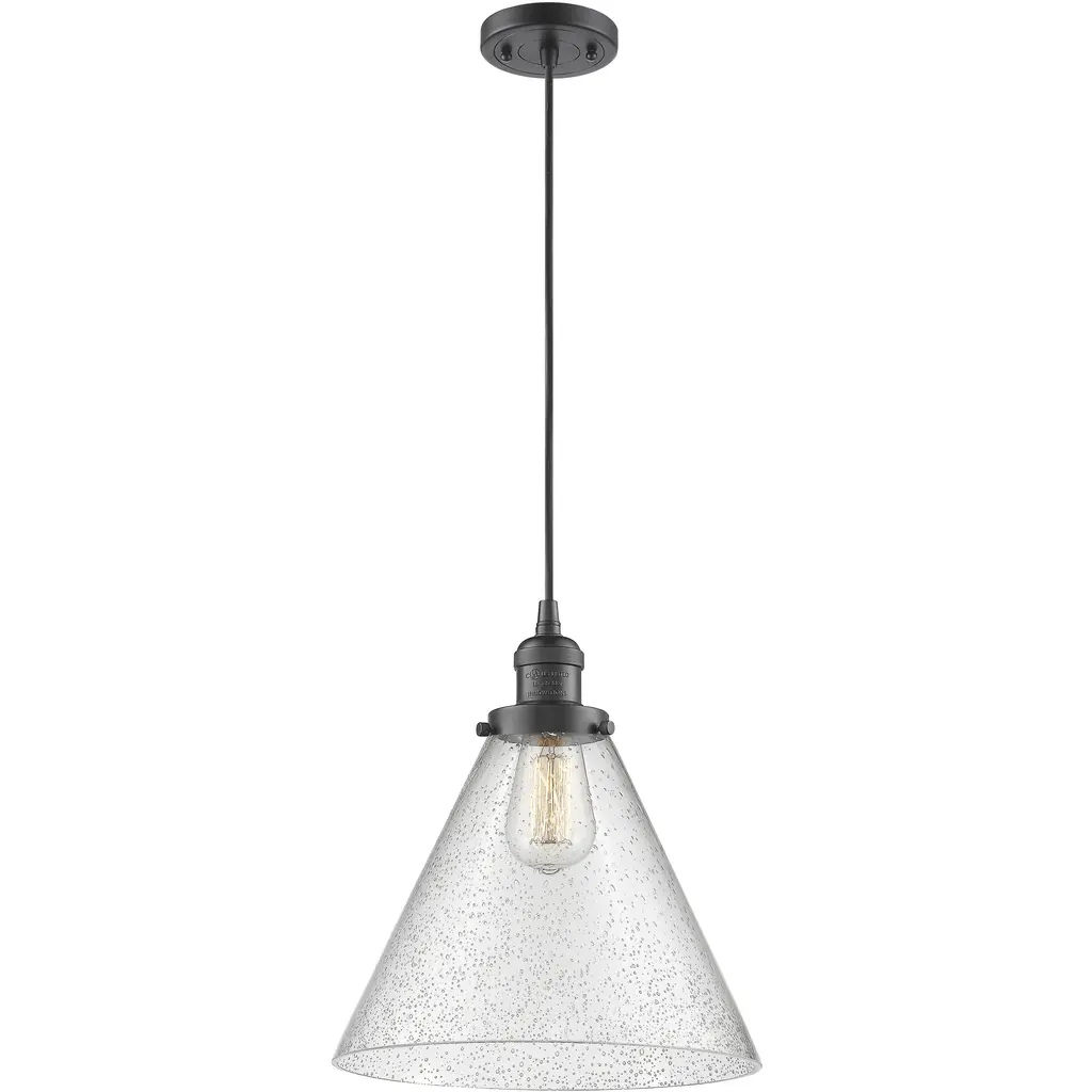 Franklin Restoration Cone 1 Light 12 Inch Matte Black Mini Pendant Ceiling Light In Incandescent, Seedy, Franklin Restoration