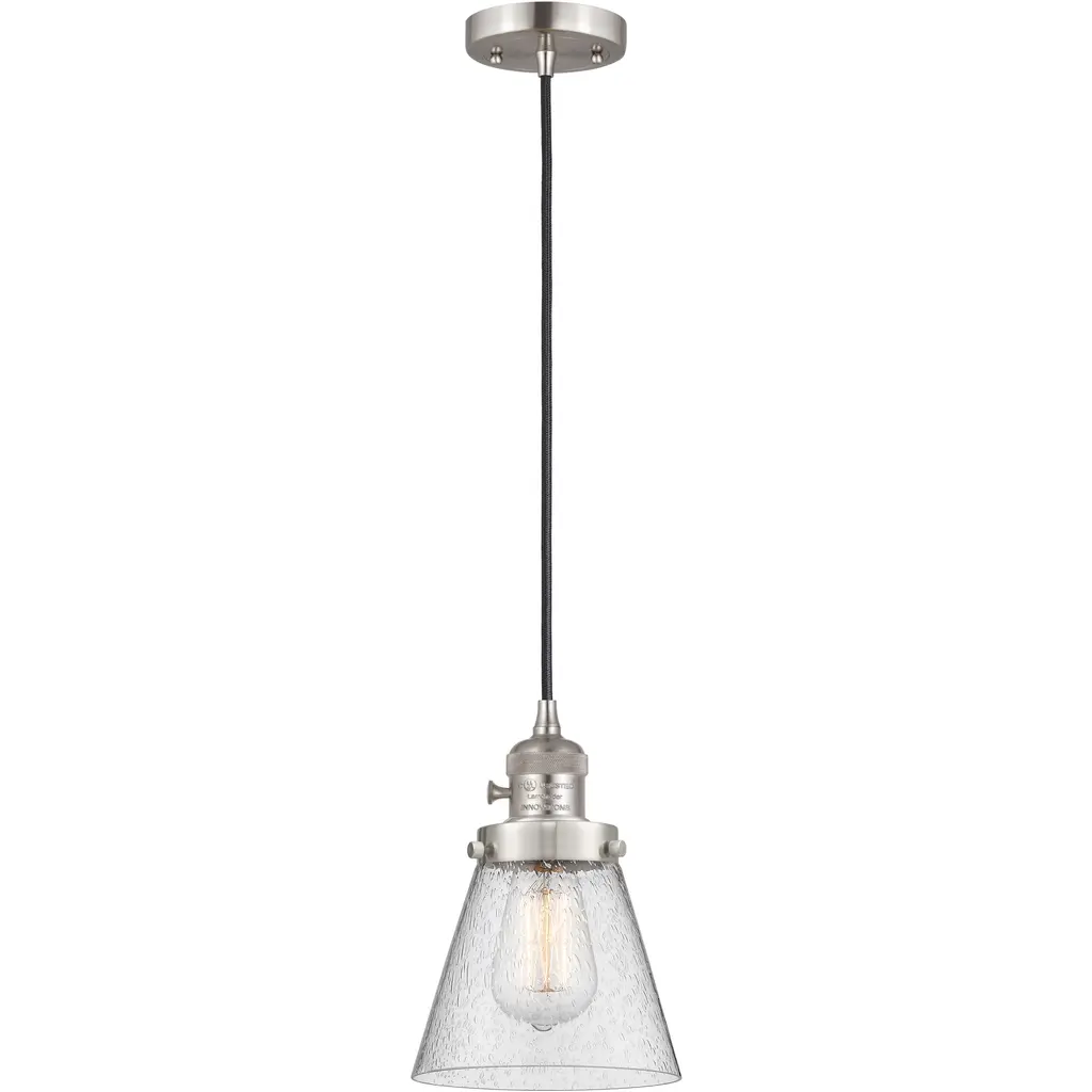 Franklin Restoration Cone 1 Light 6 Inch Brushed Brass Mini Pendant Ceiling Light In Incandescent, Seedy