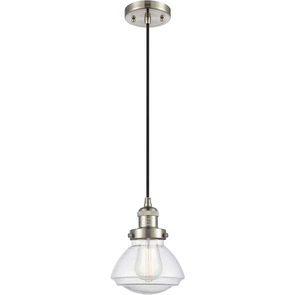 Franklin Restoration Cone 1 Light 6 Inch Brushed Satin Nickel Mini Pendant Ceiling Light In Incandescent, Seedy