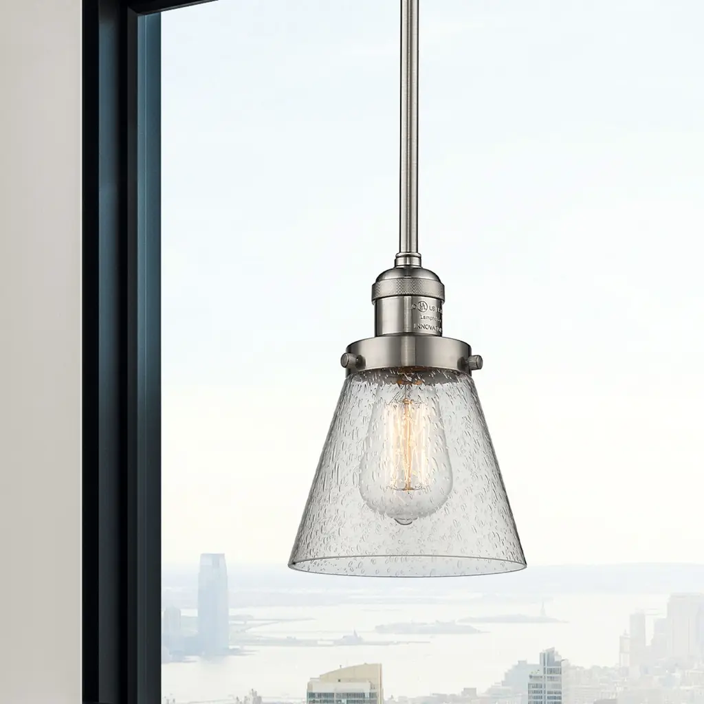 Franklin Restoration Cone 1 Light 6 Inch Brushed Satin Nickel Mini Pendant Ceiling Light In Incandescent, Seedy, Franklin Restoration