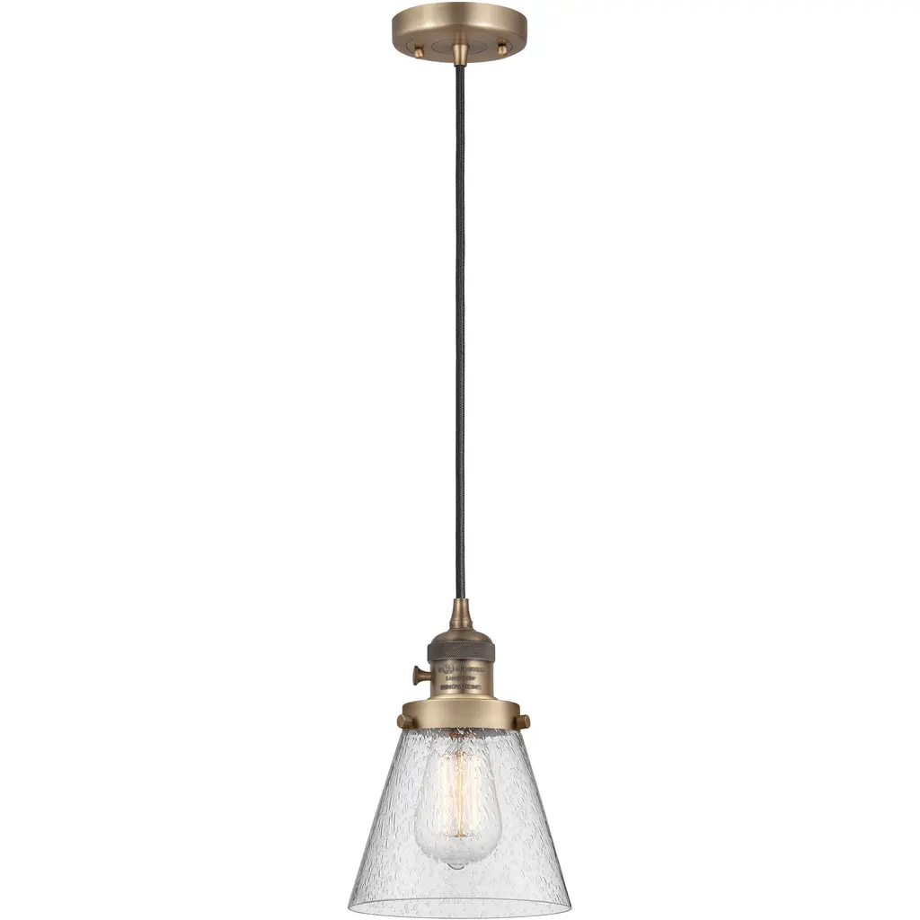 Franklin Restoration Cone 1 Light 8 Inch Satin Gold Mini Pendant Ceiling Light In Incandescent, Seedy, Franklin Restoration