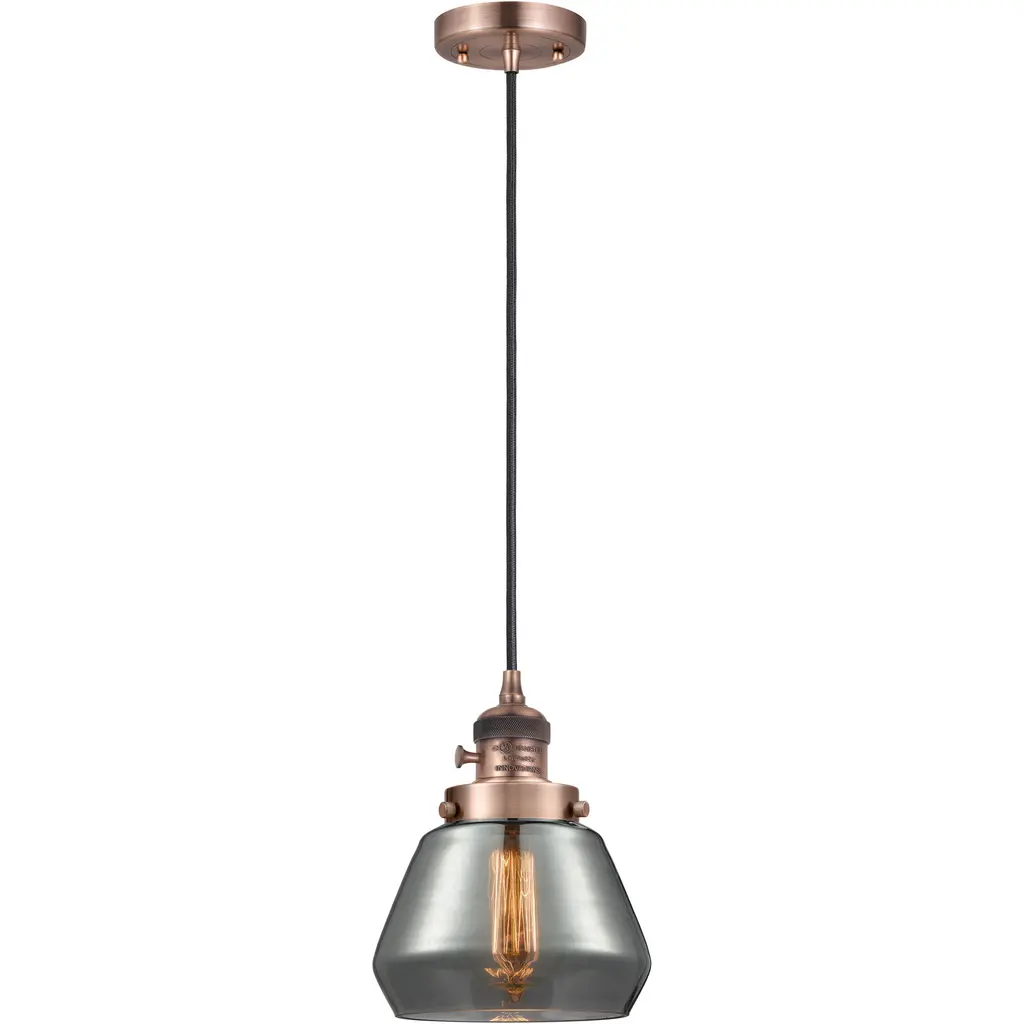 Franklin Restoration Fulton 1 Light 7 Inch Antique Copper Mini Pendant Ceiling Light In Incandescent, Plated Smoke, Franklin Restoration