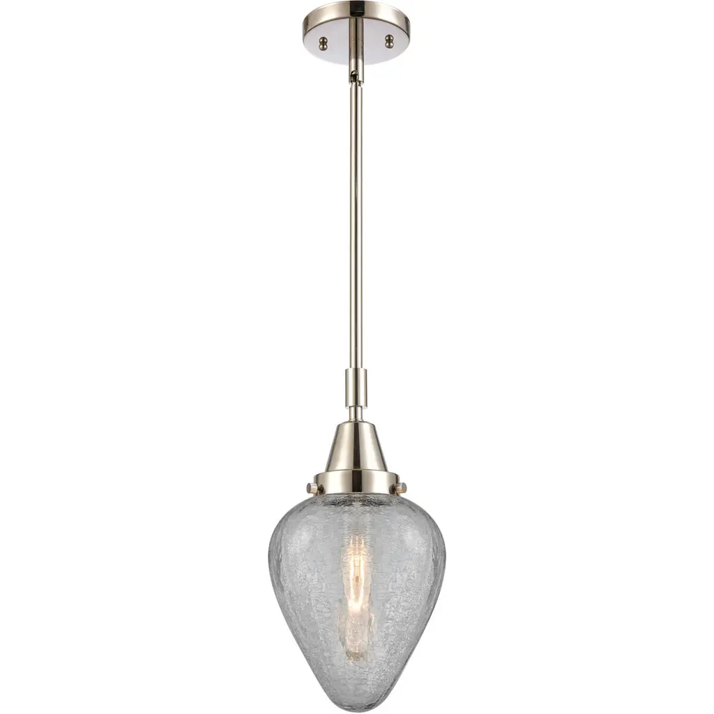 The Geneseo 1 Light Mini Pendant is part of the Franklin Restoration Collection. Includes 1-6 and 2-12 inch Stems. Additional Stems sold separately.. Solid Brass 90 Degree Hang Straight Swivel for Sloped Ceilings Included