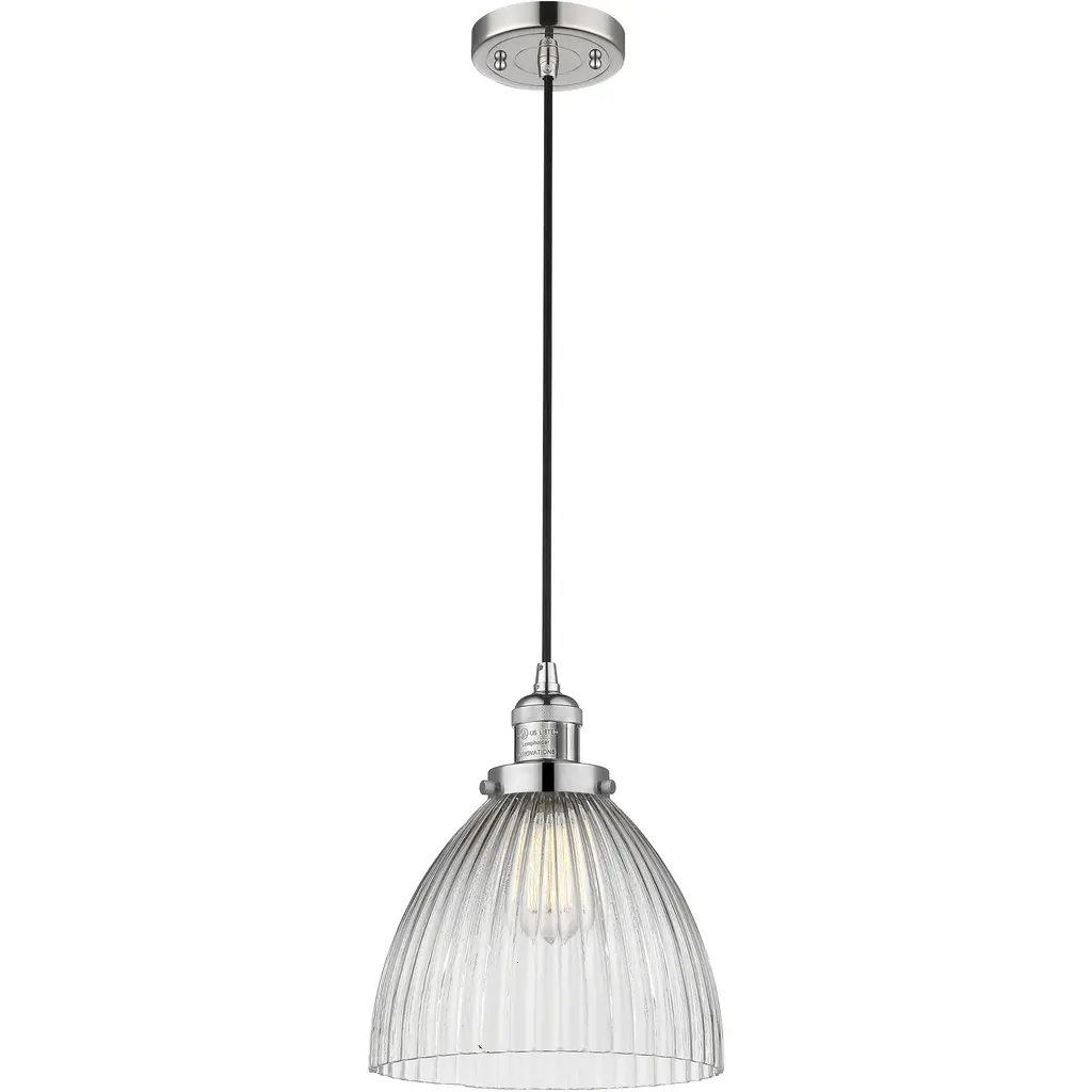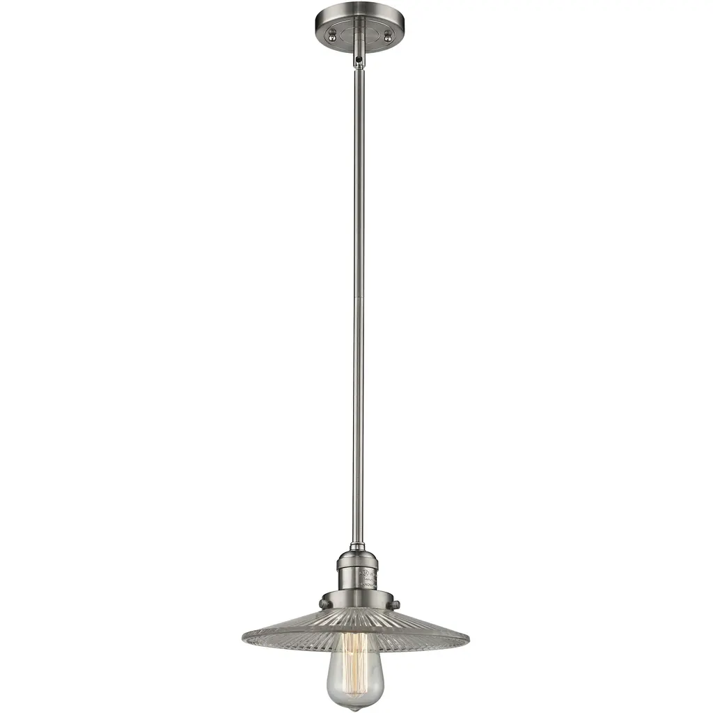 Franklin Restoration Halophane 1 Light 8.5 Inch Polished Chrome Mini Pendant Ceiling Light In Incandescent, Clear Halophane Glass, Franklin Restoration