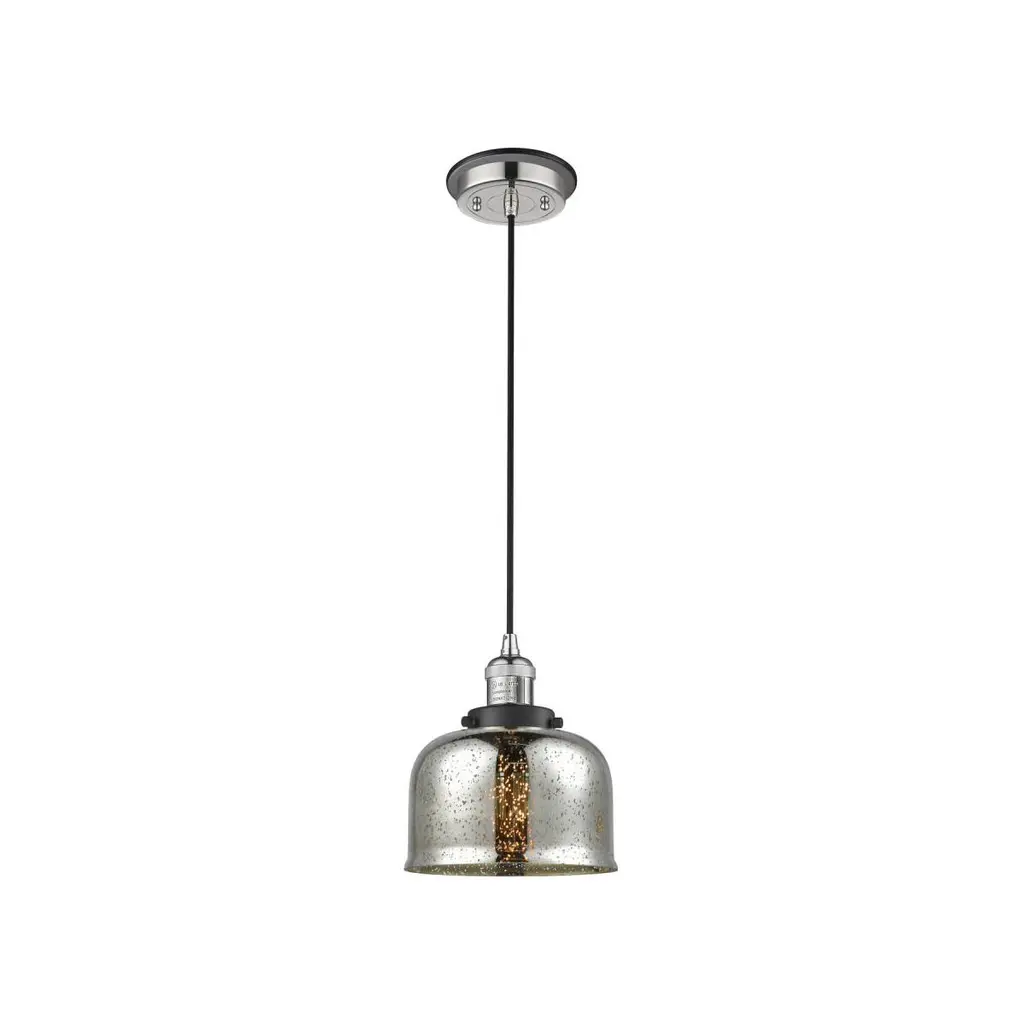 The Large Bell 1 Light Mini Pendant is part of the Franklin Restoration Collection. Includes 10 Feet Black Textured Cord