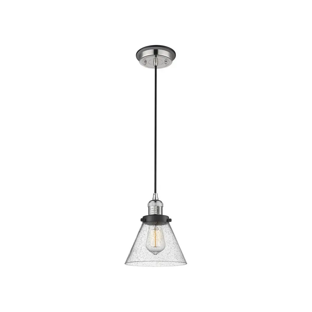 Franklin Restoration Large Cone 1 Light 8 Inch Polished Nickel/matte Black Mini Pendant Ceiling Light In Plated Smoke Glass