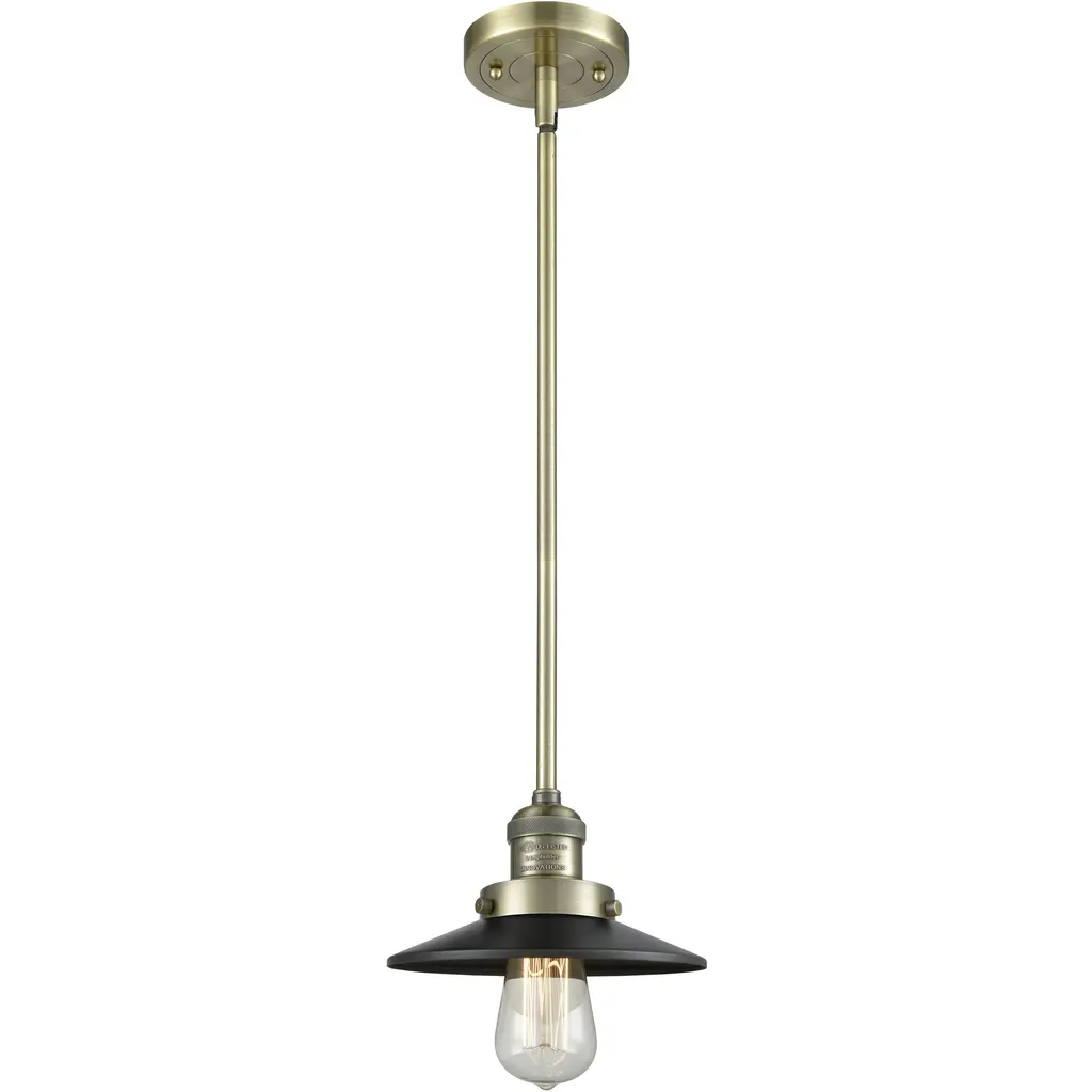 Franklin Restoration Railroad 1 Light 8 Inch Antique Brass Mini Pendant Ceiling Light In Incandescent, Franklin Restoration