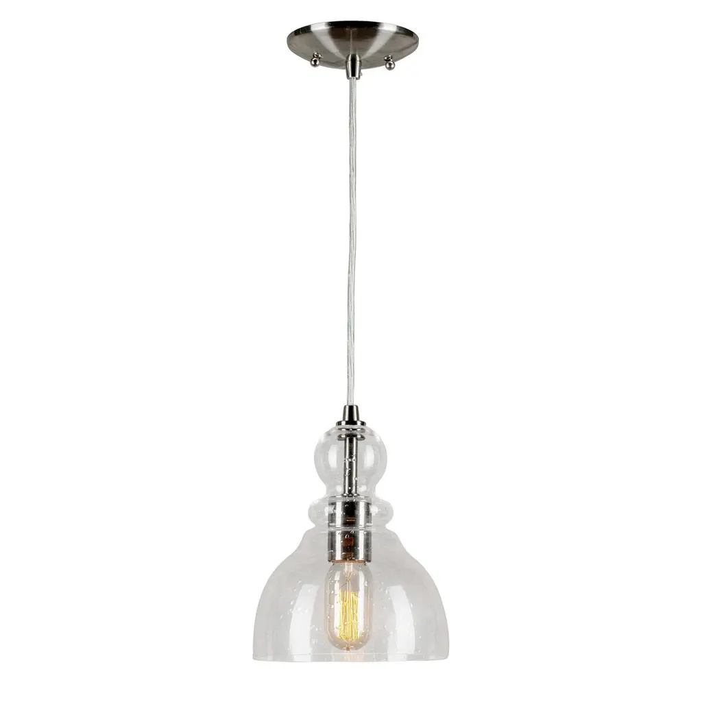 The Fraser Loop Silver Pendant offers a bright and eye-catching update to your kitchen or dining room. This hanging pendant light features a bell-shaped glass shade with smoke gray color to create a stunning farmhouse look. An antique silver ceiling mount provides a complementary touch to the single bulb pendant, giving your home decor a refined addition. Professional installation by an electrician is recommended.