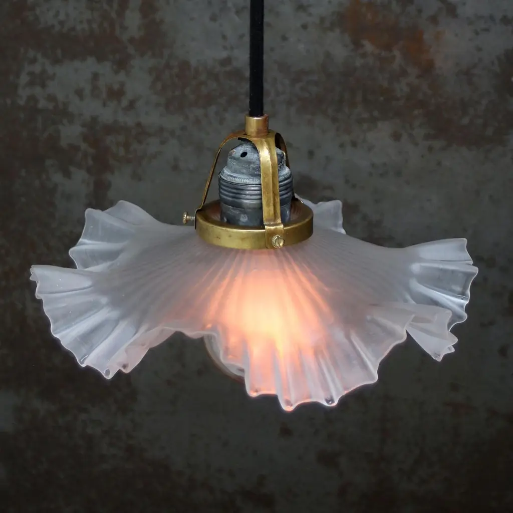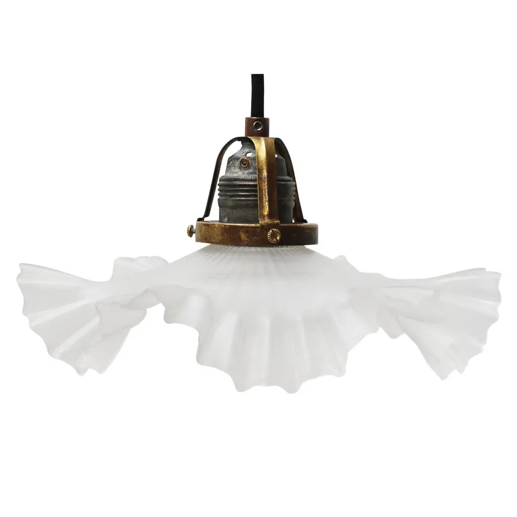 French Art Nouveau Brass Frosted Glass Pendant Lights 1920s